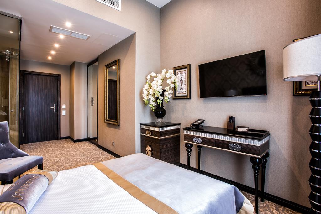 Расстояние до аэропорта составляет 21 километр. Добраться до Московского железнодорожного вокзала можно за 5 минут на автомобиле. Номерной фонд разного уровня комфорта и вместимости располагается в 5-этажном здании. В комнатах выполнен дизайнерский ремонт, установлена удобная мебель для отдыха и хранения одежды. Есть кондиционер, мини-холодильник, сейф, телевизор со спутниковыми каналами, чайная станция, телефон. Санузел индивидуальный, с ванной или душем. Для комфорта гостей предоставляются полотенца, халаты, тапочки и туалетно-косметические принадлежности. На территории отеля функционируют ресторан и паб «Метрополь», а также лобби-бар «Majestic». Возможна доставка еды и напитков в номер. На 4 этаже гостиницы обустроен тренажерный зал. Стойка регистрации работает круглосуточно. Личный транспорт можно оставить на парковке. В качестве дополнительной услуги есть возможность заказать трансфер.