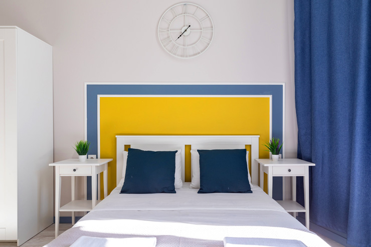 В номере: вешалка, зеркало, кровать двуспальная, прикроватные тумбочки, стол, стулья, мини-холодильник, набор посуды, плита электрическая, стиральная машина, телевизор, утюг, электрочайник