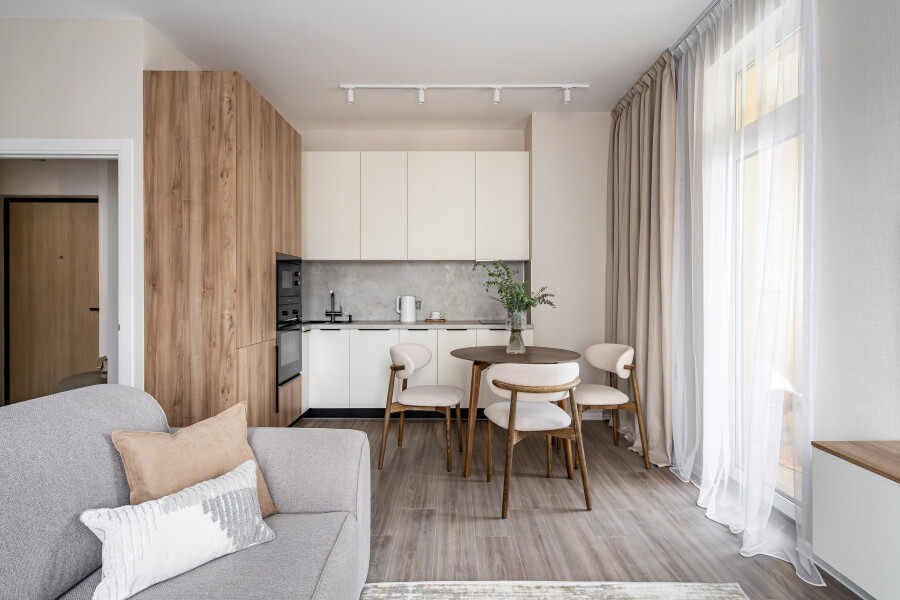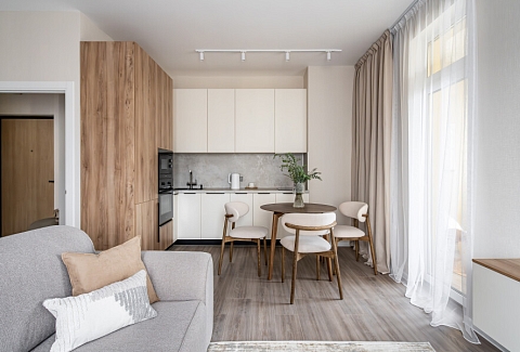 Апартаменты «Merino Home Alba» - это когда пространство не требует лишнего: только тёплый текстиль, хороший кофе и вид из окна на просыпающийся город. В апартаментах «Merino Home Alba» ожидания всегда совпадают с реальностью. Во всей сети «Merino Home» (более 70 объектов в Петербурге) действует единый стандарт качества, а именно: чистое постельное бельё из прачечной для каждых новых гостей, профессиональный клининг, наличие необходимых в быту вещей: средства гигиены, посуда, техника, качественный сервис.В апартаментах есть все для комфортного проживания: двуспальные кровати, мебель.