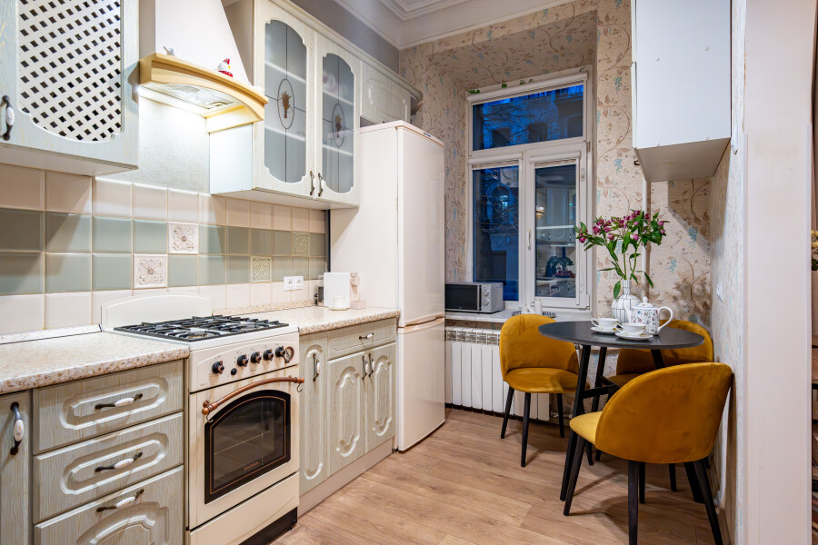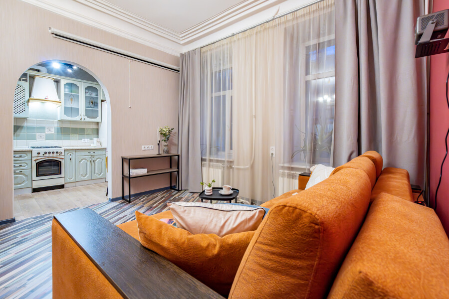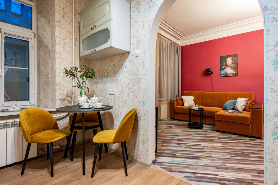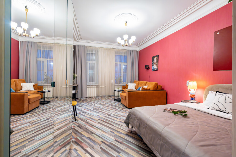 Кухня со всем необходимым, с плитой, духовым шкафом, холодильником и другой техникой и посудой (в том числе кофемашина, чай, кофе, сахар, соль). Стиральная машина, фен, утюг, гладильная доска, интернет Wi-Fi. Санузел с ванной, шампунь, бальзам, гель для душа, жидкое мыло, ватные палочки, ватные диски, гель для стирки, мицеллярная вода, зубные наборы, тапочки, постельное бельё, полотенца. На каждого гостя предусмотрено по 2 полотенца. Замена белья и полотенец производится при бронировании свыше 7 суток бесплатно. В иных случаях за дополнительную плату. По предварительному запросу предоставляется детский стульчик и кроватку-манеж (платно).Апартаменты расположены в Адмиралтейском районе, что удобно относительно всех транспортных магистралей города. Неподалеку торговый центр «Галерея», сад Сан-Галли, а также большой выбор кафе, баров, ресторанов. До главных достопримечательностей северной столицы – Эрмитажа, Русского музея, Казанского и Исаакиевского соборов можно доехать всего за 15 минут. Рядом широкий Московский проспект, соединяющий центр города с аэропортом Пулково и КАД. Транспортная доступность: 6 минут пешком до станции метро «Технологический институт», 20 минут на такси до аэропорта Пулково, 7 минут на такси до Московского вокзала.