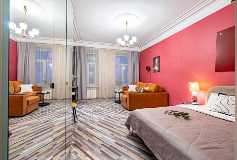 Самолетом до аэропорта Пулково (г. Санкт-Петербург), далее на рейсовом автобусе №39 до остановки «ст. метро Московская», далее на рейсовом автобусе №50 до остановки «ст. метро Технологический институт», далее пройти 520 м до апартаментов.