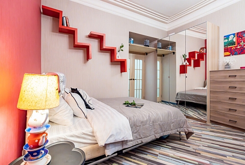 Апартаменты с проектором в стиле «Алисы в Стране чудес» находятся в 6 минутах от метро «Технологический институт». В апартаментах «Merino Home Alice» ожидания всегда совпадают с реальностью. Во всей сети «Merino Home Alice» (более 70 объектов в Петербурге) действует единый стандарт качества, а именно: чистое постельное бельё из прачечной для каждых новых гостей, профессиональный клининг, наличие необходимых в быту вещей: средства гигиены, посуда, техника, качественный сервис.В апартаментах есть все для комфортного проживания: двуспальная кровать (160х200), раскладной диван, проектор, отдельный кабинет.