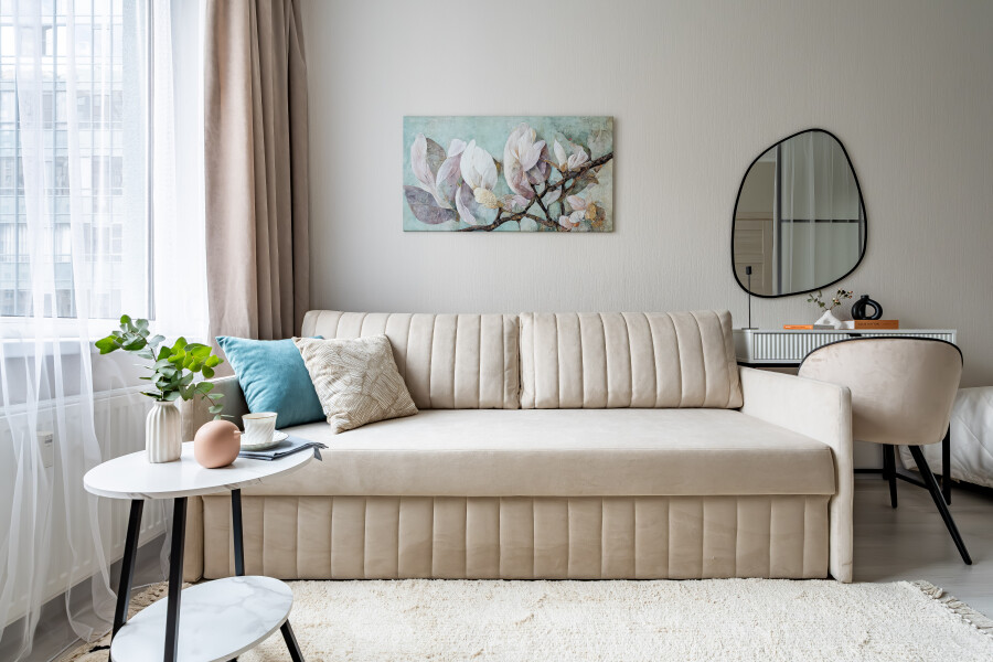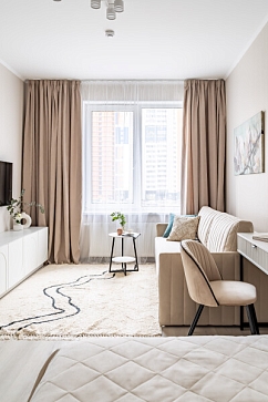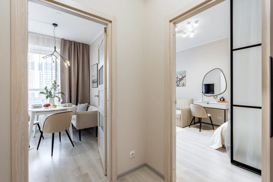 Апартаменты «Merino Home Camellia» - это когда пространство не требует лишнего: только тёплый текстиль, хороший кофе и вид из окна на просыпающийся город. В апартаментах «Merino Home Camellia» ожидания всегда совпадают с реальностью. Во всей сети «Merino Home» (более 70 объектов в Петербурге) действует единый стандарт качества, а именно: чистое постельное бельё из прачечной для каждых новых гостей, профессиональный клининг, наличие необходимых в быту вещей: средства гигиены, посуда, техника, качественный сервис.В апартаментах есть все для комфортного проживания: двуспальная кровать, раскладной диван, мебель.