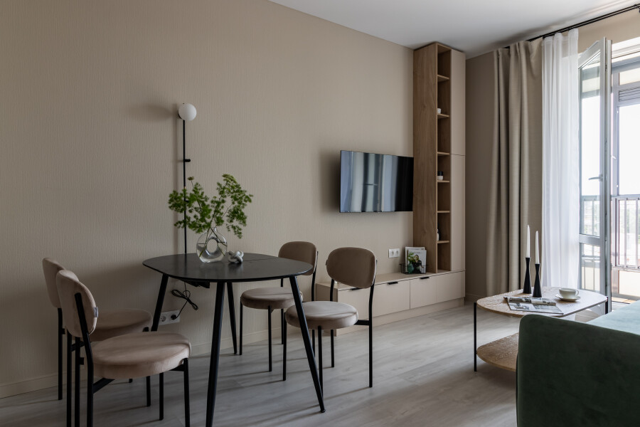 Апартаменты «Merino Home Comfy» расположены недалеко от Ивановского карьера в спальном районе Санкт-Петербурга. В шаговой доступности находятся несколько зеленых зон, парк аттракционов, каток, Музей Императорского фарфорового завода. Доехать к центру культурной столицы на авто можно за полчаса.Стильные однокомнатные апартаменты с интерьером в приглушенной цветовой гамме размещены в современном жилом комплексе с благоустроенной территорией и парковками.