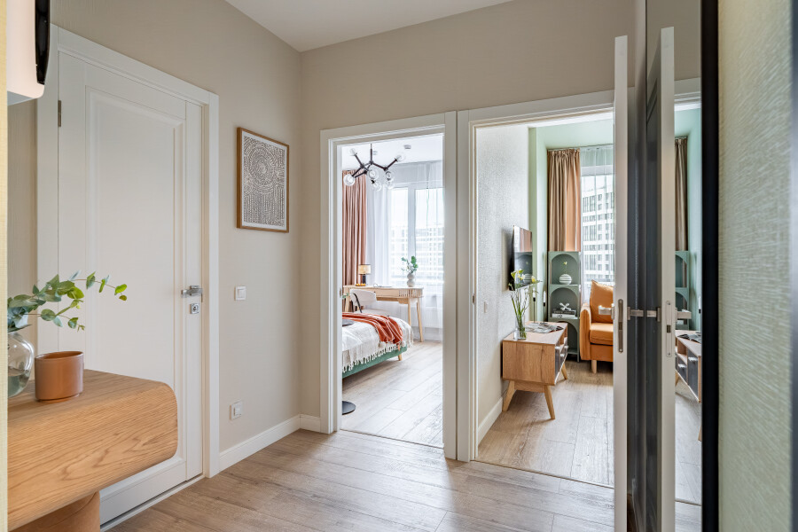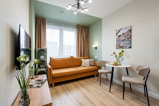 Апартаменты «Merino Home Honey» - это когда пространство не требует лишнего: только тёплый текстиль, хороший кофе и вид из окна на просыпающийся город. В апартаментах «Merino Home Honey» ожидания всегда совпадают с реальностью. Во всей сети «Merino Home» (более 70 объектов в Петербурге) действует единый стандарт качества, а именно: чистое постельное бельё из прачечной для каждых новых гостей, профессиональный клининг, наличие необходимых в быту вещей: средства гигиены, посуда, техника, качественный сервис.Апартаменты оборудованы всем необходимым для жизни и отдыха: двуспальной кроватью, раскладным диваном, кухонной зоной с кофемашиной и посудомоечной машиной (в том числе чай, кофе, сахар, соль).