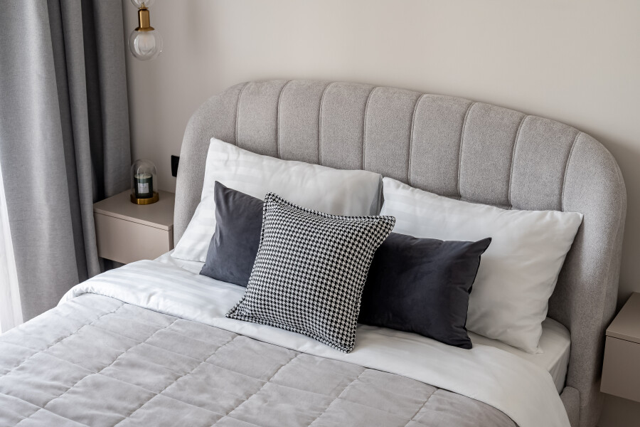 В номере: вешалка, диван, зеркало, кровать двуспальная, прикроватные тумбочки, стол, стулья, шкаф, духовой шкаф, кофемашина, микроволновая печь, набор посуды, плита электрическая, стиральная машина, телевизор, утюг, холодильник, электрочайник