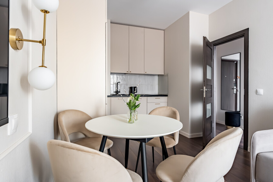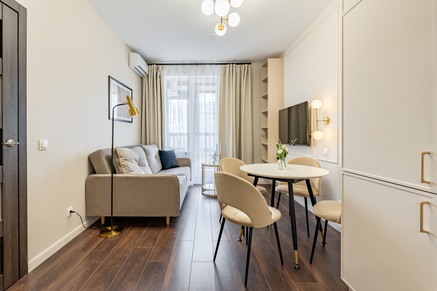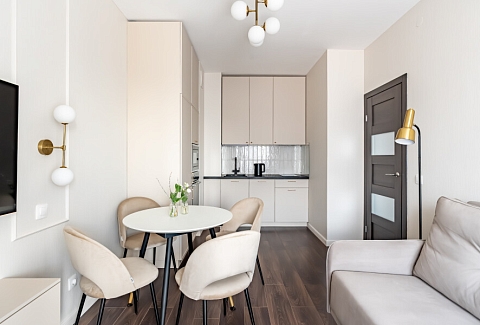 В апартаментах «Merino Home Natali» ожидания всегда совпадают с реальностью. Во всей сети «Merino Home» (более 70 объектов в Петербурге) действует единый стандарт качества, а именно: чистое постельное бельё из прачечной для каждых новых гостей, профессиональный клининг, наличие необходимых в быту вещей: средства гигиены, посуда, техника, качественный сервис.В апартаментах есть все для комфортного проживания: мебель, двуспальная кровать, раскладной диван, Smart TV, кондиционер. Кухня оборудована всем необходимым, плитой, холодильником, чайником и другой техникой и посудой (в том числе чай, кофе, сахар, масло, овсянка, печенье). Стиральная машина, фен, утюг, гладильная доска, интернет Wi-Fi. Санузел с ванной, шампунь, бальзам, гель для душа, жидкое мыло, ватные палочки, ватные диски, гель для стирки, мицеллярная вода, зубные наборы, тапочки, постельное бельё, полотенца. На каждого гостя предусмотрено по 2 полотенца. Замена белья и полотенец производится при бронировании свыше 7 суток бесплатно. В иных случаях за дополнительную плату. По предварительному запросу предоставляется детский стульчик и кроватку-манеж (платно).Апартаменты расположены в Невском районе, что удобно относительно всех транспортных магистралей города. Неподалеку большой выбор кафе, баров, ресторанов. Это исторический квартал, расположенный в стороне от основных туристических центров. Однако, в пределах досягаемости можно найти несколько интересных мест, в том числе парки, исторические кварталы и промышленные здания. Среди них - парк Мальновка, где есть как исторические, так и современные достопримечательности. Рядом НИПНИ им. Бехтерева, Госпиталь для ветеранов войн, Стадион «Октябрьский», Центр физической культуры Невского района. Транспортная доступность: 10 минут пешком до метро «Ломоносовская», 3 станции до Невского проспекта и площади Восстания, близость к КАД — 30 минут до аэропорта Пулково, возможность парковки рядом с жилым комплексом, закрытые двор с детскими площадками, Дино Парк и аттракционы, Ивановский карьер.