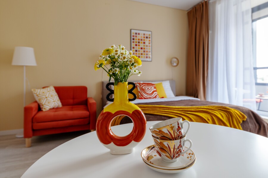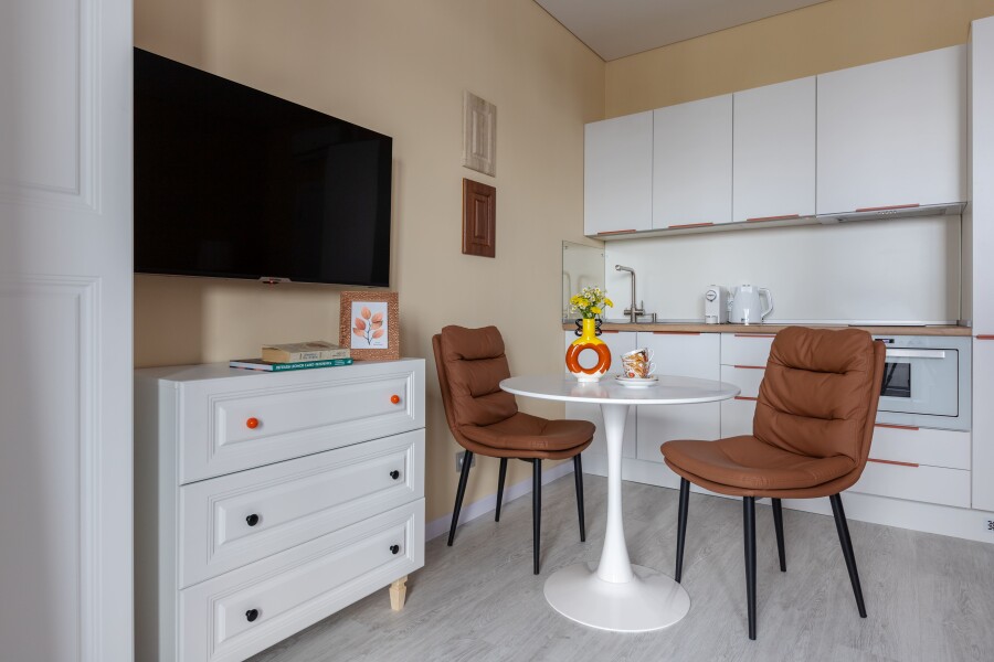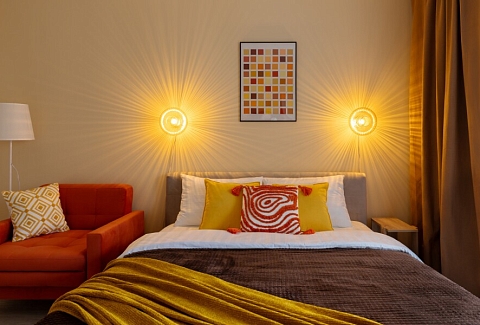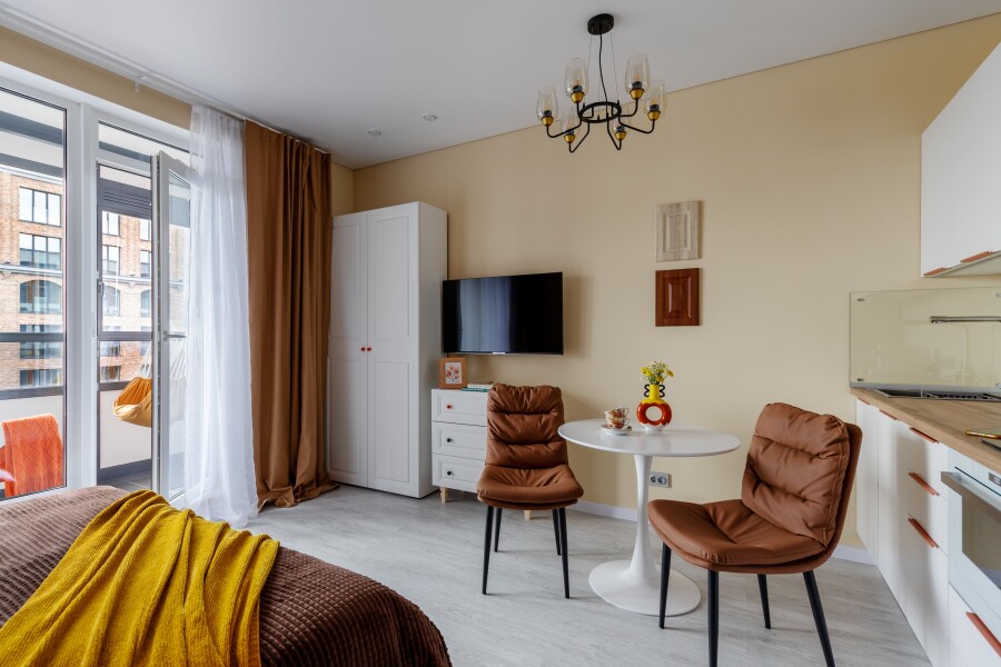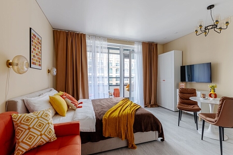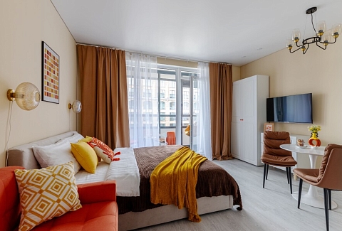 Апартаменты «Merino Home Sola» - это когда пространство не требует лишнего: только тёплый текстиль, хороший кофе и вид с балкона на просыпающийся город. В апартаментах «Merino Home Sola» ожидания всегда совпадают с реальностью. Во всей сети«Merino Home» (более 70 объектов в Петербурге) действует единый стандарт качества, а именно: чистое постельное бельё из прачечной для каждых новых гостей, профессиональный клининг, наличие необходимых в быту вещей: средства гигиены, посуда, техника, качественный сервис.В апартаментах есть все для комфортного проживания: двуспальная кровать, раскладное кресло, мебель.