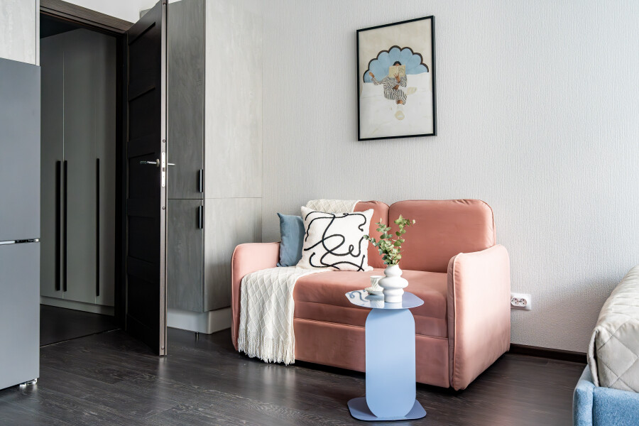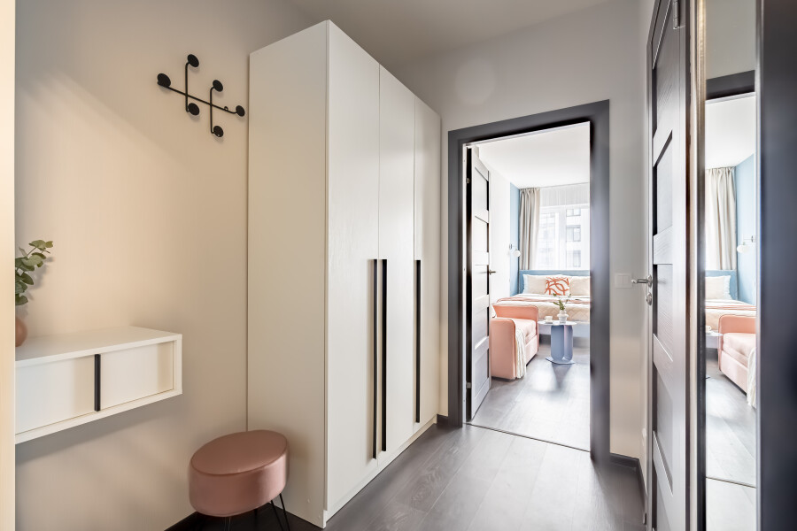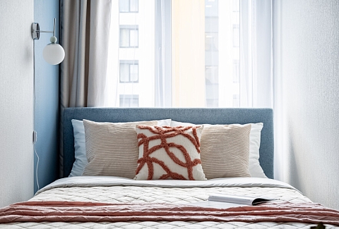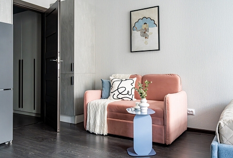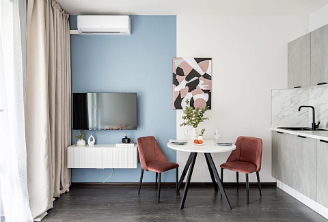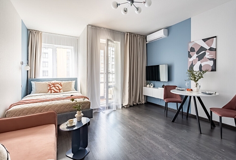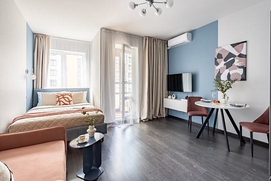 На закрытой территории обустроены детские игровые комплексы, прогулочные зоны, вместительные парковки. Работают продуктовые магазины, кафе, аптеки.Уютные апартаменты оформлены в приглушенной цветовой гамме. Света помещению добавляет панорамное остекление. Жилая комната располагает двуспальной кроватью, небольшим раскладным диваном, кухонным и обеденным пространствами. Прихожая оснащена шкафом и зеркалом. Совмещенный санузел укомплектован душевой кабиной и стиральной машиной. В студии предусмотрены Wi-Fi и Smart TV. По согласованию возможно заселение с питомцем.