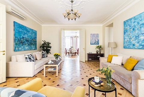 Просторные апартаменты площадью 130 квадратных метров в самом сердце Санкт-Петербурга, оформленные в элегантном неоклассическом стиле. Жилье располагается в тихом, уютном доме в непосредственной близости от храма Спаса на Крови. В распоряжении гостей будут три отдельные спальни, обеспечивающие комфортный отдых для всей семьи или гостей, две ванные комнаты, обширная кухня, идеально подходящая для приготовления и приема пищи, и большая светлая гостиная, где можно расслабиться и провести время с близкими.