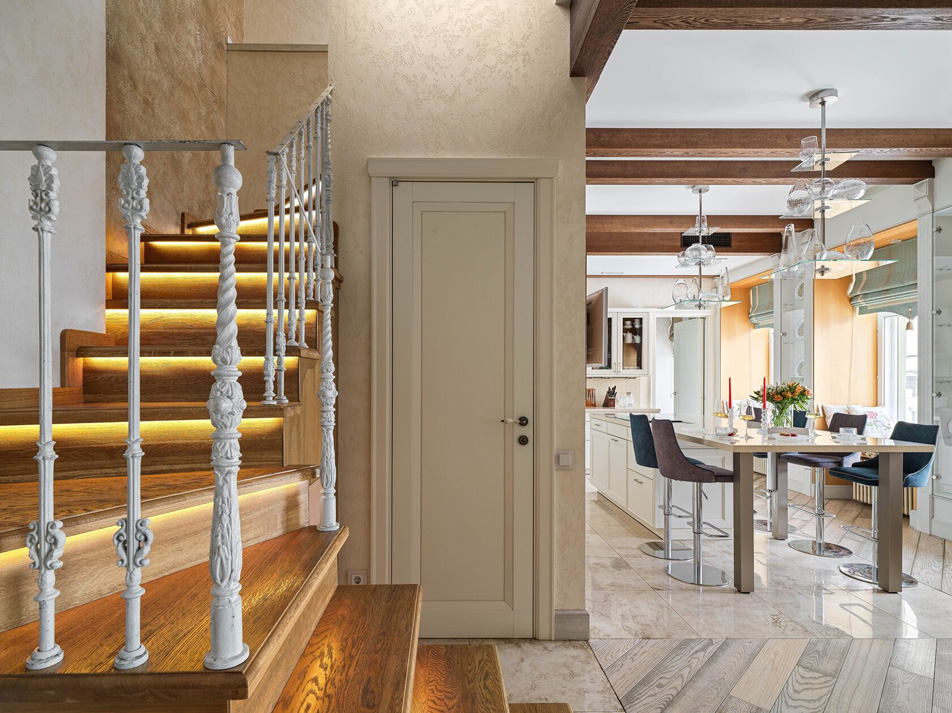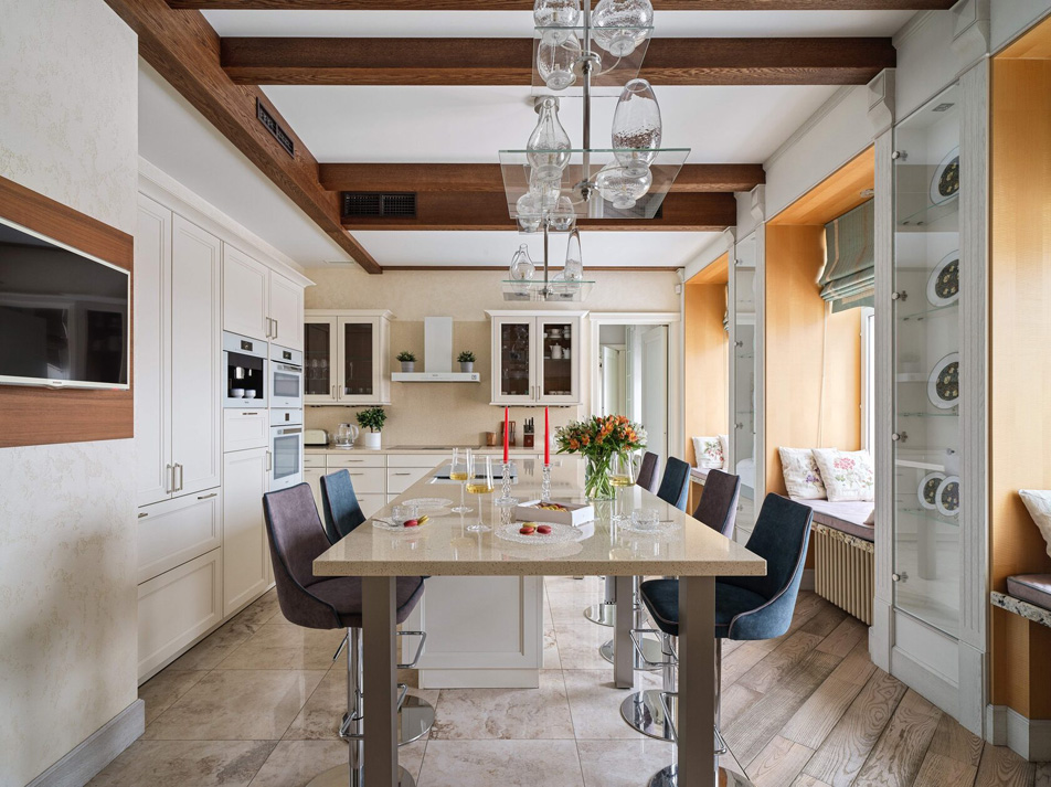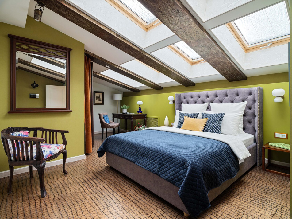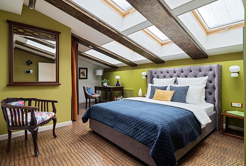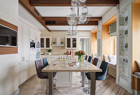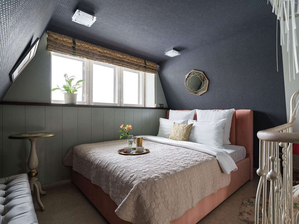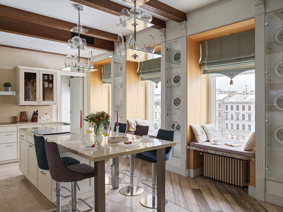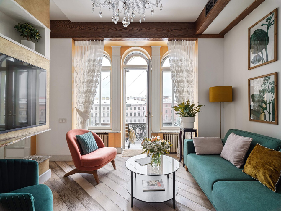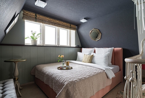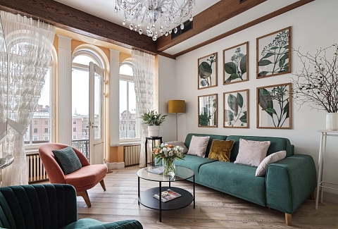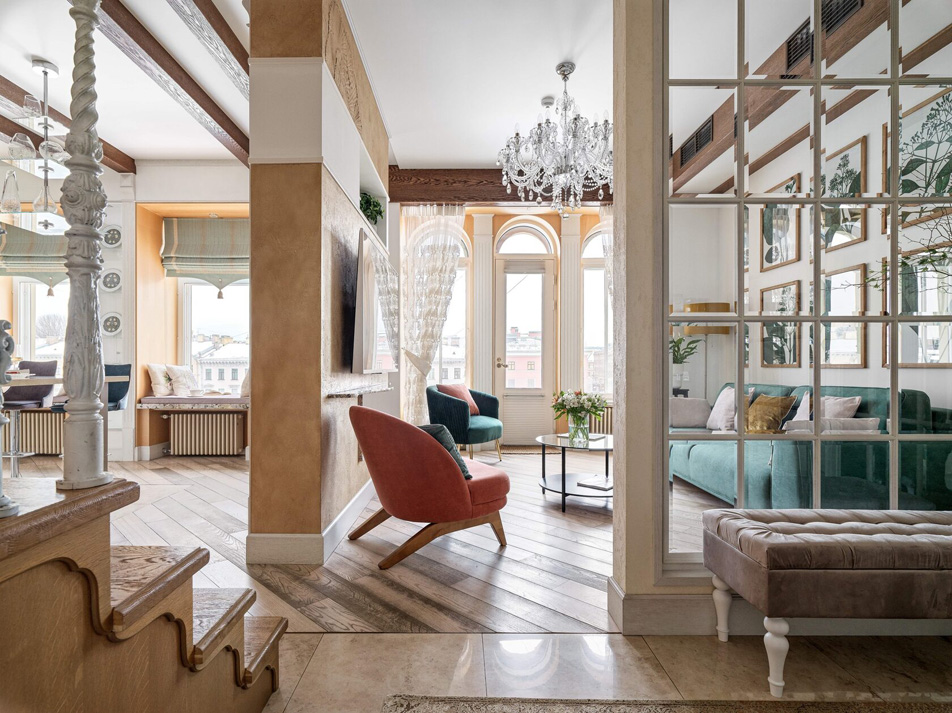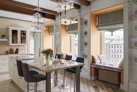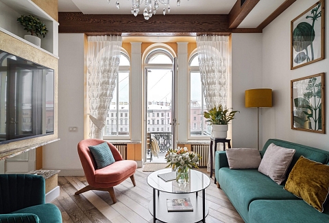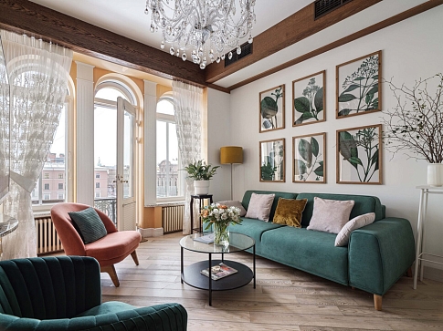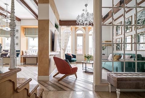 Неповторимые трехэтажные апартаменты площадью 170 квадратных метров на Невском проспекте открывают захватывающий вид на Фонтанку и Аничков мост. На первом уровне располагается просторная гостиная с выходом на балкон, совмещенная кухня-столовая, а также главная спальня с личной ванной комнатой, оборудованной двумя окнами и хамамом. Верхний этаж, расположенный в мансарде, включает в себя две спальни, каждая из которых имеет свой санузел.