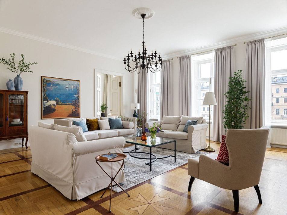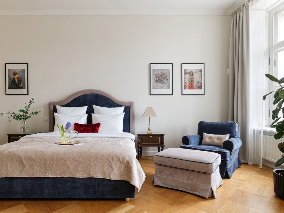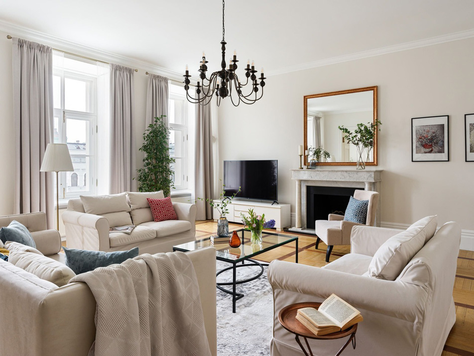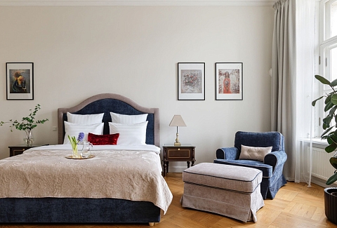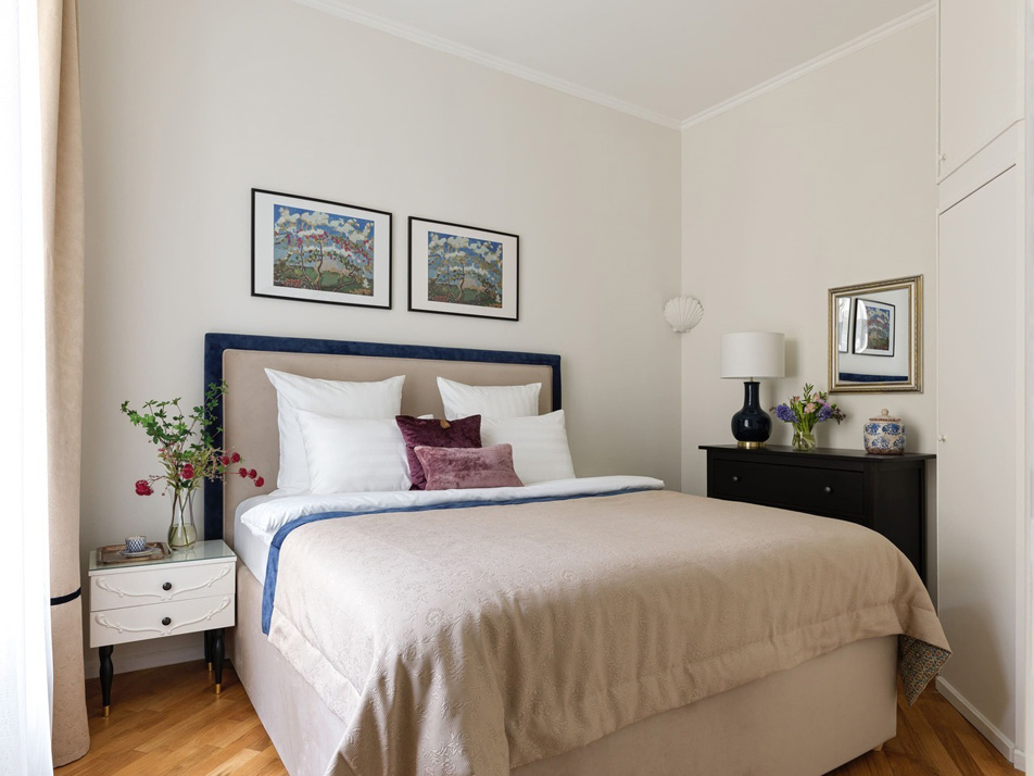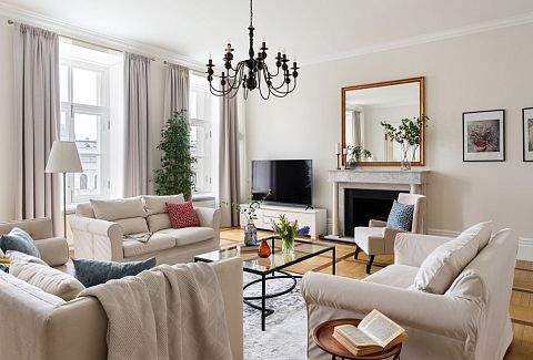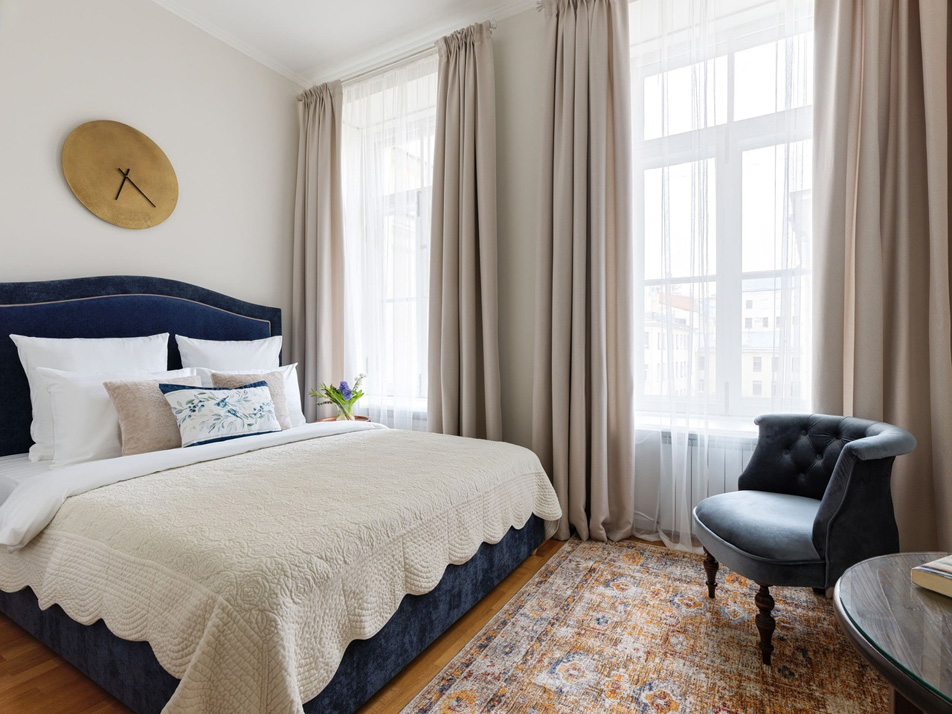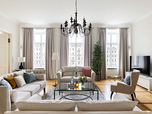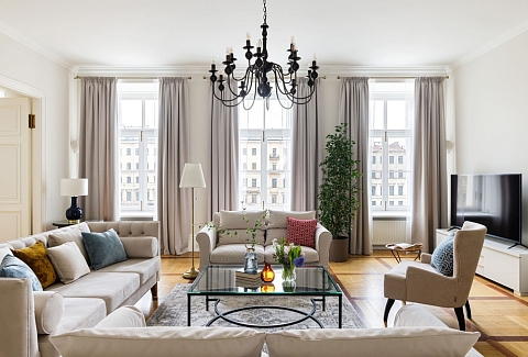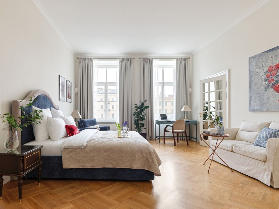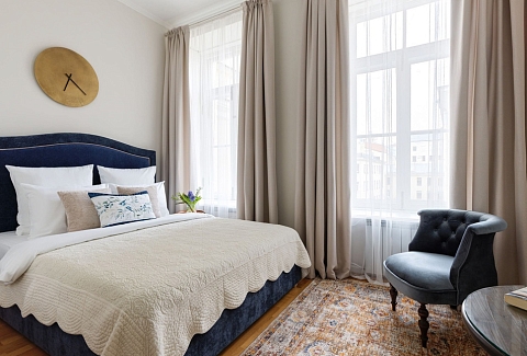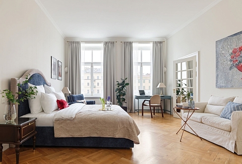 Просторные апартаменты площадью 180 кв.м располагают четырьмя изолированными спальнями, тремя ванными комнатами, кухней, совмещенной со столовой, и большой гостиной. Из окон открывается великолепный панорамный вид на набережную реки Фонтанки, Аничков мост и Невский проспект.В наличии вся нужная бытовая техника и предметы обихода, а также высокоскоростной беспроводной интернет. В непосредственной близости находится известная улица Рубинштейна с многочисленными ресторанами.