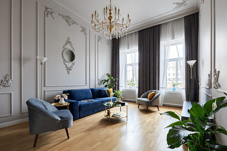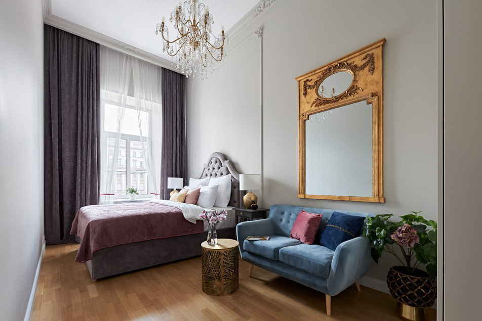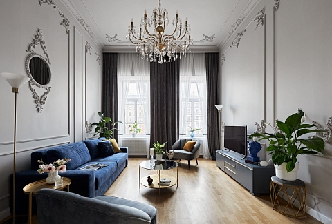 Просторные апартаменты площадью 130 кв.м предлагают четыре отдельные спальни, две ванные комнаты, оборудованную кухню и светлую гостиную. Из окон открывается великолепный вид на живописную набережную реки Фонтанки. Высокие потолки (4 метра) украшены изящной лепниной.Жильё оснащено всей необходимой бытовой техникой и удобствами, включая высокоскоростной Wi-Fi.