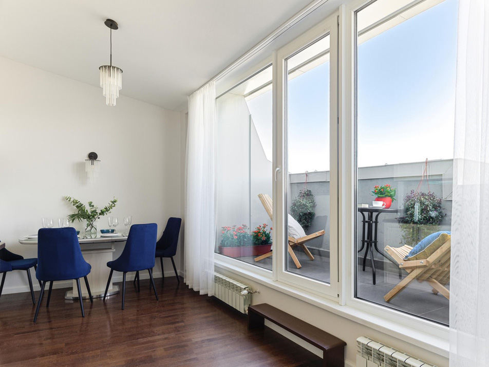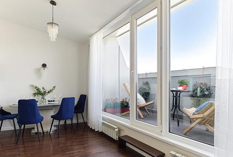 Прелестные апартаменты под крышей с двумя персональными террасами, расположенная прямо на Невском проспекте, откуда открывается панорамный вид на город. Всего пять минут пешком до знаменитой улицы Рубинштейна, известной своими ресторанами. Основные городские достопримечательности находятся в шаговой доступности.