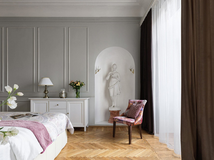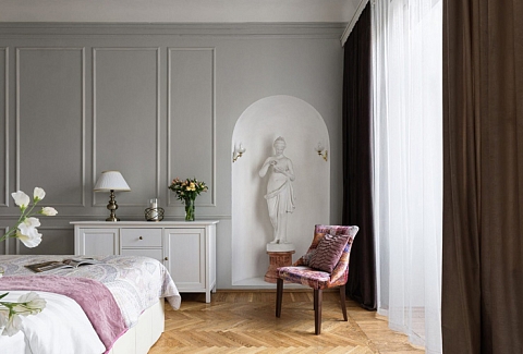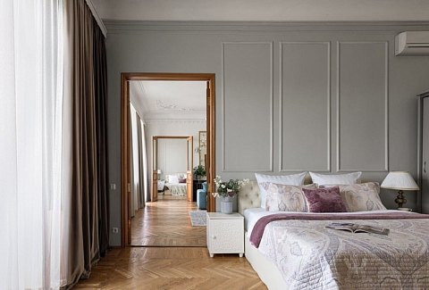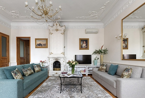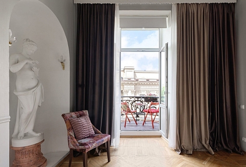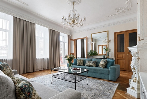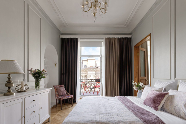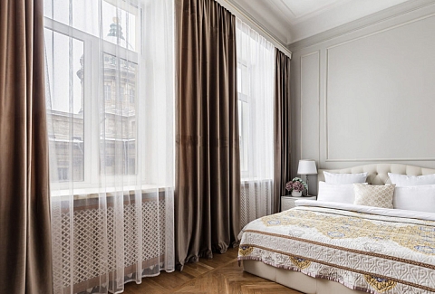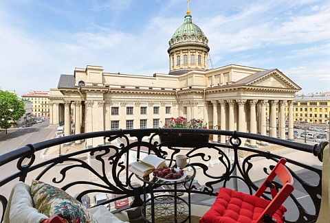 Просторные апартаменты площадью 120 кв.м предлагает две отдельные спальни, два санузла, сауну и большую гостиную. Два балкона и окна открывают завораживающий вид на Казанский собор. Здесь царит атмосфера тишины и гармонии, наполненная особой энергетикой и светом.