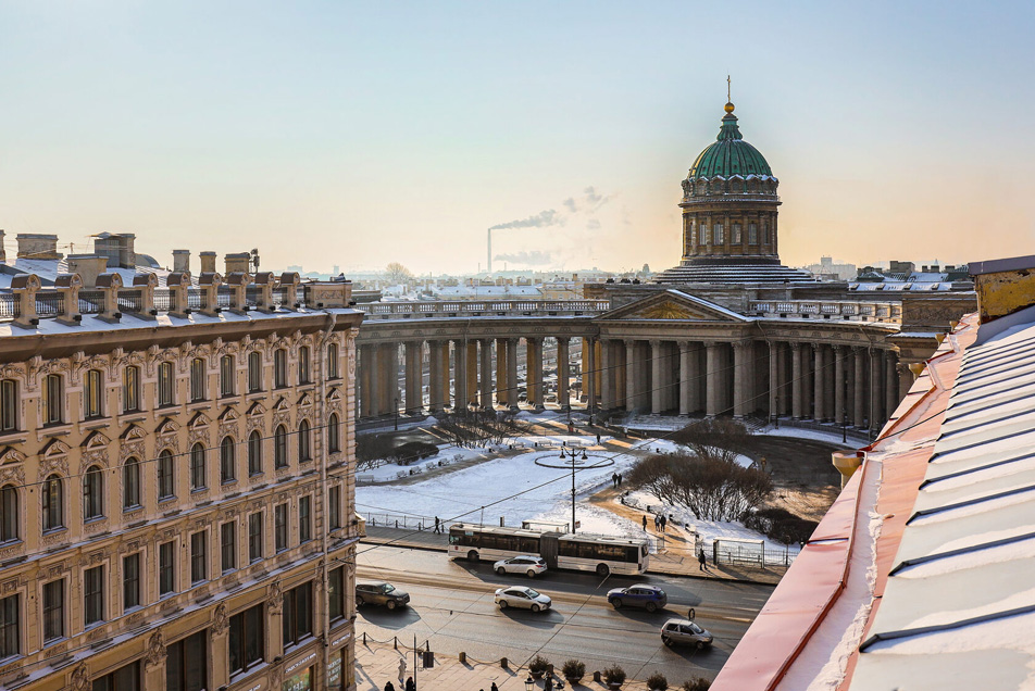 Самолетом до аэропорта Пулково (г. Санкт-Петербург), далее на рейсовом автобусе №39 до остановки «ст. м. Московская», далее на метро до станции «Невский проспект», далее пройти пешком 380 м до отеля.