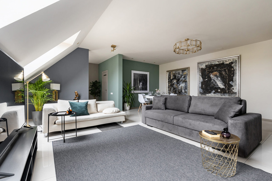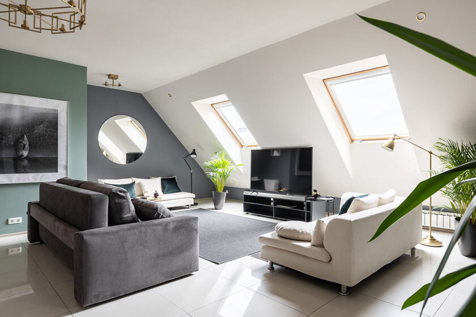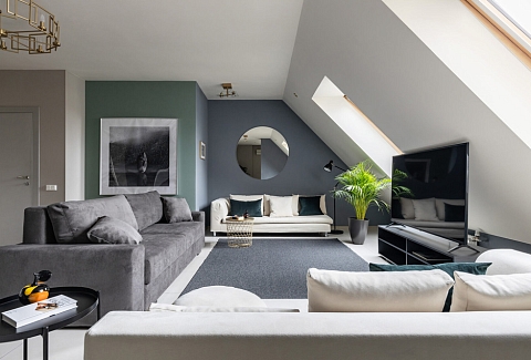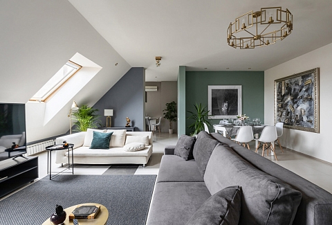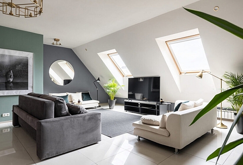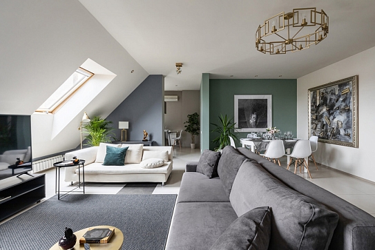 Просторная мансарда площадью 170 квадратных метров предлагает четыре отдельные спальни, три ванные комнаты, два балкона и впечатляющий вид на городские крыши. К вашим услугам также большой современный телевизор с доступом к Youtube и Netflix и уникальный дизайн интерьера.Апартаменты расположены в тихом дворе на улице Маяковского, недалеко от Невского проспекта. В здании есть лифт и предусмотрена парковка для автомобилей.