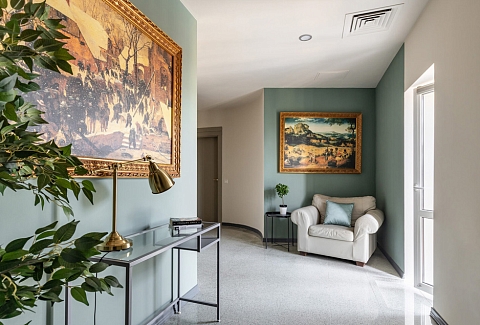 В номере: вешалка, диван, диван раскладной, зеркало, кресла, кровать двуспальная, прикроватные тумбочки, стол, стулья, шкаф, гладильная доска, духовой шкаф, кондиционер, кофемашина, микроволновая печь, набор посуды, плита газовая, посудомоечная машина, стиральная машина, телевизор, утюг, холодильник, электрочайник