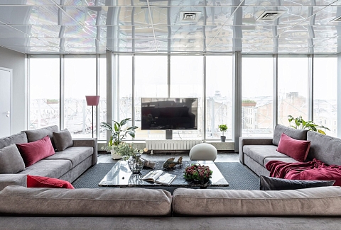 Двухуровневые апартаменты площадью 200 кв.м с уникальным дизайном предлагают захватывающий вид благодаря панорамным окнам и приватной террасе. Четыре изолированные спальни, большая гостиная и три ванных комнаты обеспечивают комфортное проживание. Расположены в тихом дворе на улице Маяковского, недалеко от Невского проспекта.