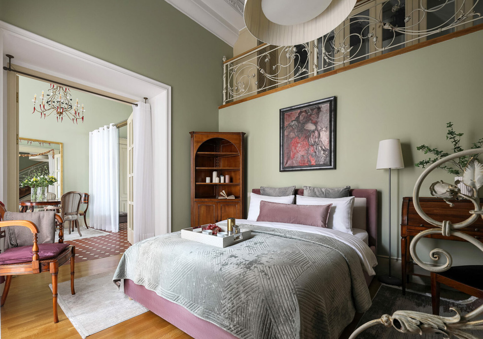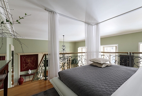 В номере: вешалка, диван, диван раскладной, зеркало, кресла, кровать двуспальная, прикроватные тумбочки, стол, стулья, шкаф, гладильная доска, духовой шкаф, кондиционер, микроволновая печь, набор посуды, плита электрическая, посудомоечная машина, стиральная машина, телевизор, утюг, холодильник, электрочайник