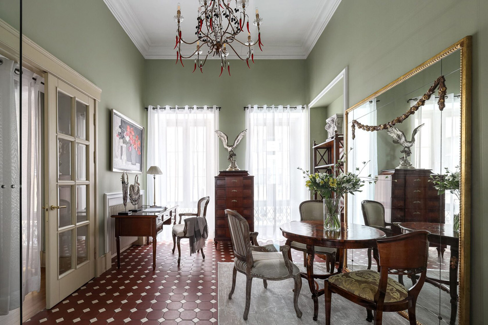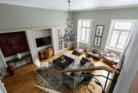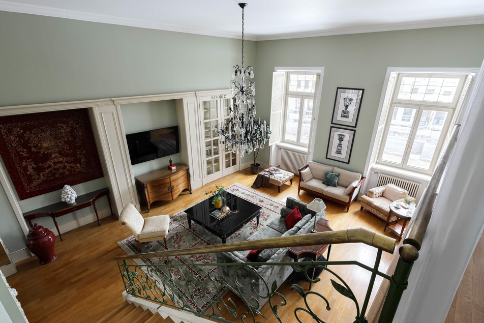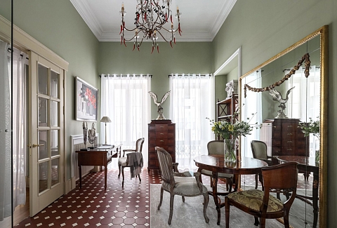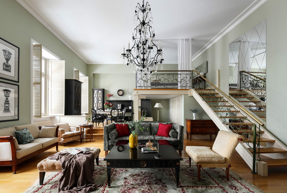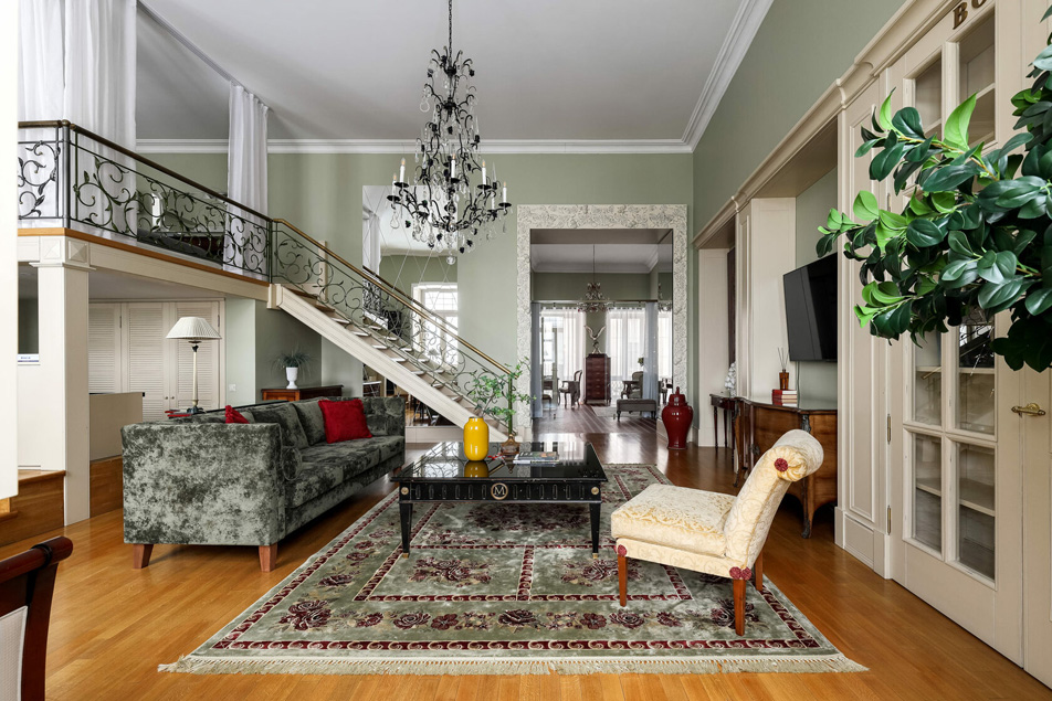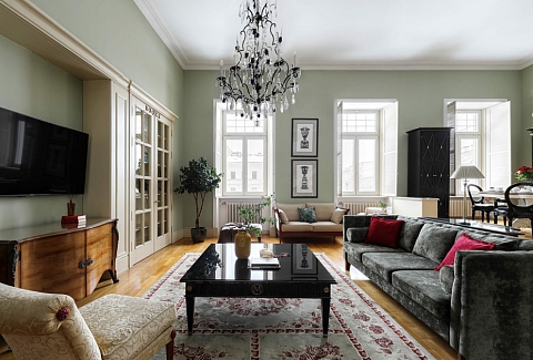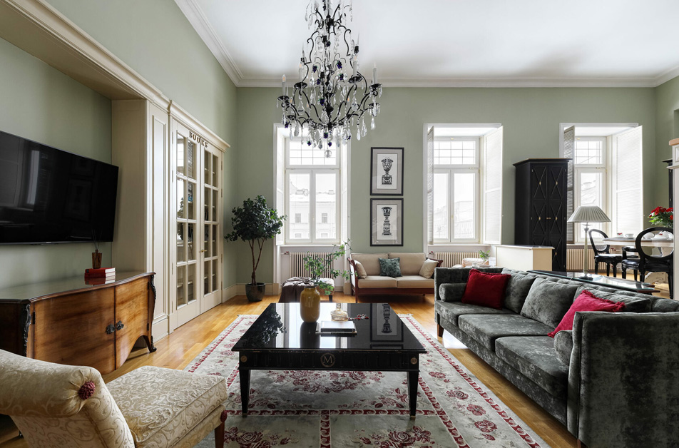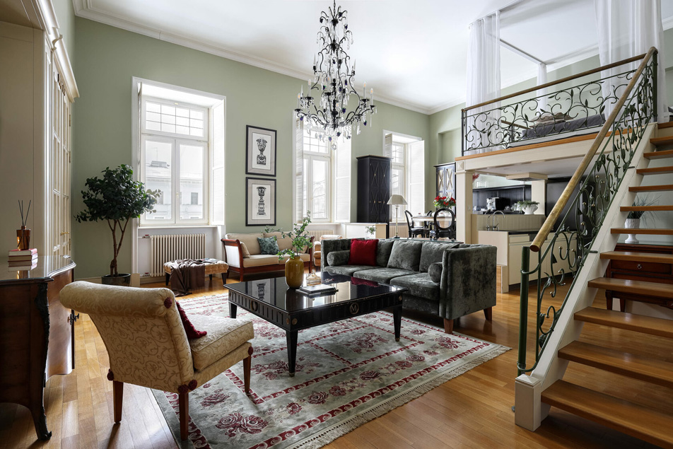 Просторная квартира площадью 140 квадратных метров с изысканным дизайном и эксклюзивной меблировкой находится в здании Cartier, в непосредственной близости от Эрмитажа. Панорамные окна предлагают захватывающий вид на набережную и Невский проспект. В шаговой доступности от дома расположены многочисленные знаменитые рестораны города.