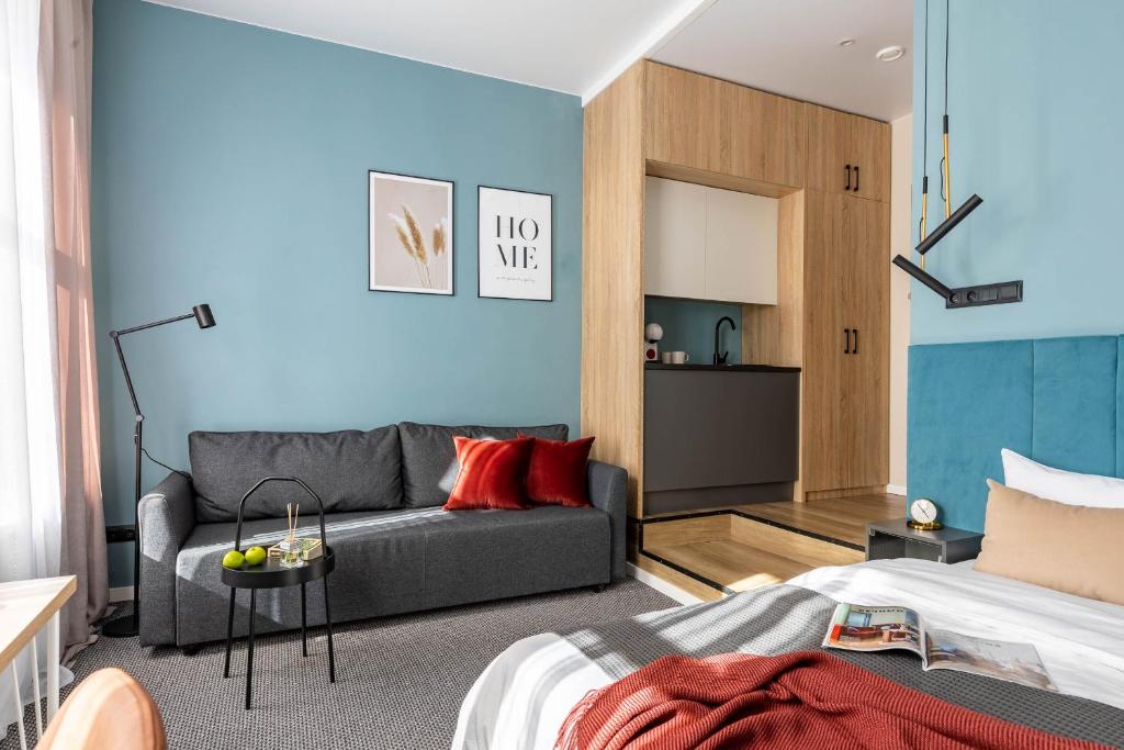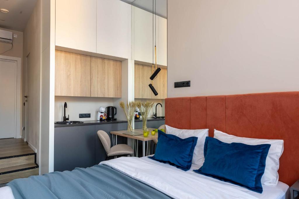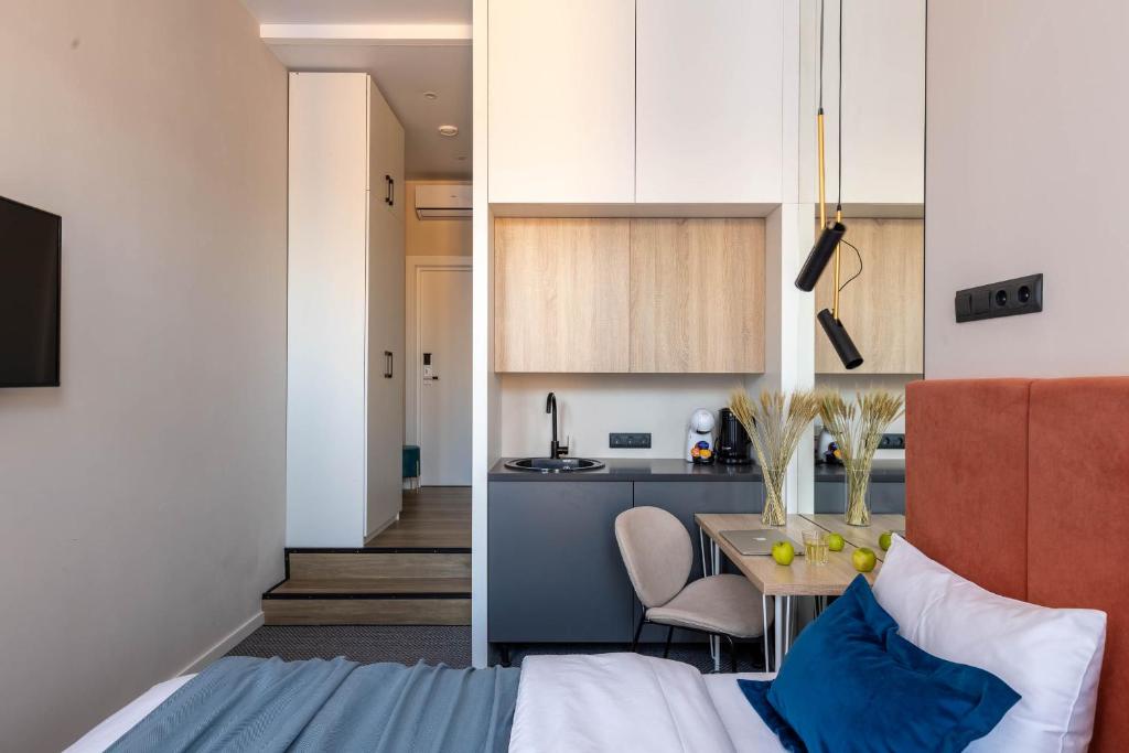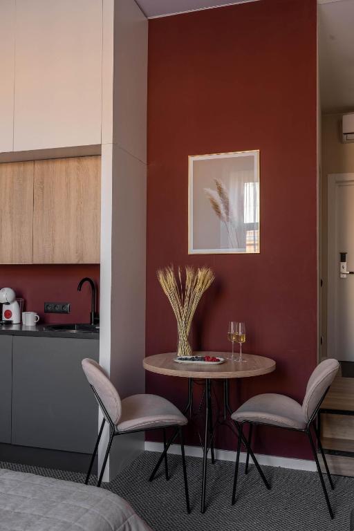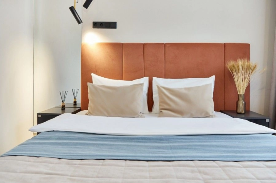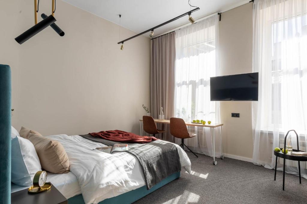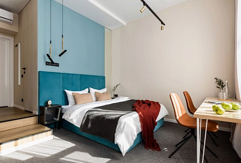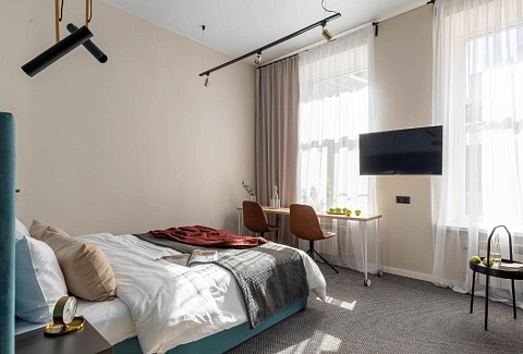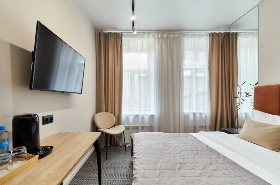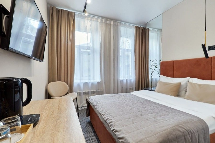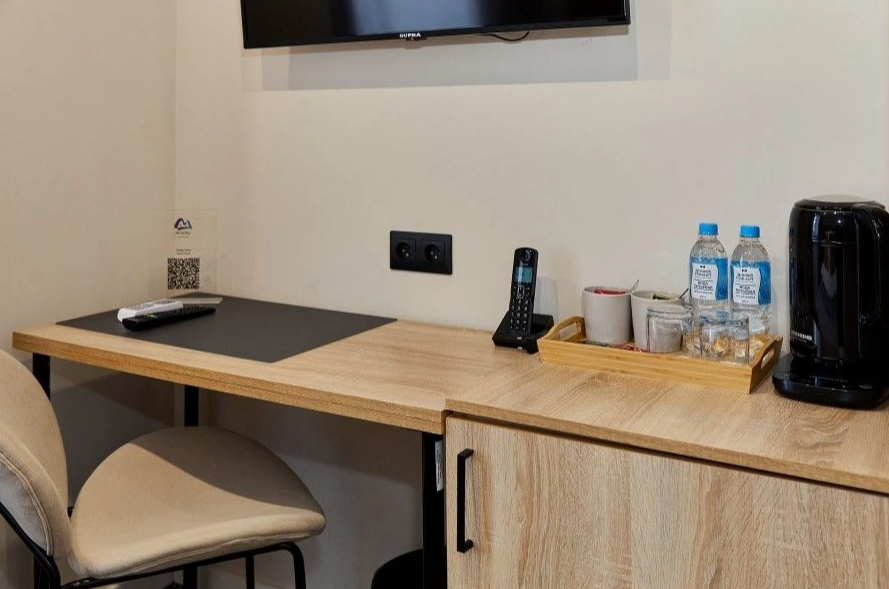 Гостей ожидает 24 комфортабельных номера с современными стильными интерьерами, оформленными в благородных оттенках. В каждой комнате есть санузел с душем, кондиционер, набор бытовой техники: фен, электрочайник, телевизор, холодильник. Среди услуг — высокоскоростной беспроводной интернет.