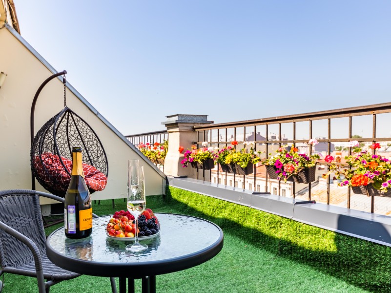 Гостей ожидают 19 комфортабельных номеров с современным стильным дизайном. Во всех номерах предусмотрен собственный санузел, где для отдыхающих подготовлены наборы косметических принадлежностей, кондиционер, есть набор посуды, телевизор, мини-холодильник.Среди услуг — беспроводной высокоскоростной интернет.