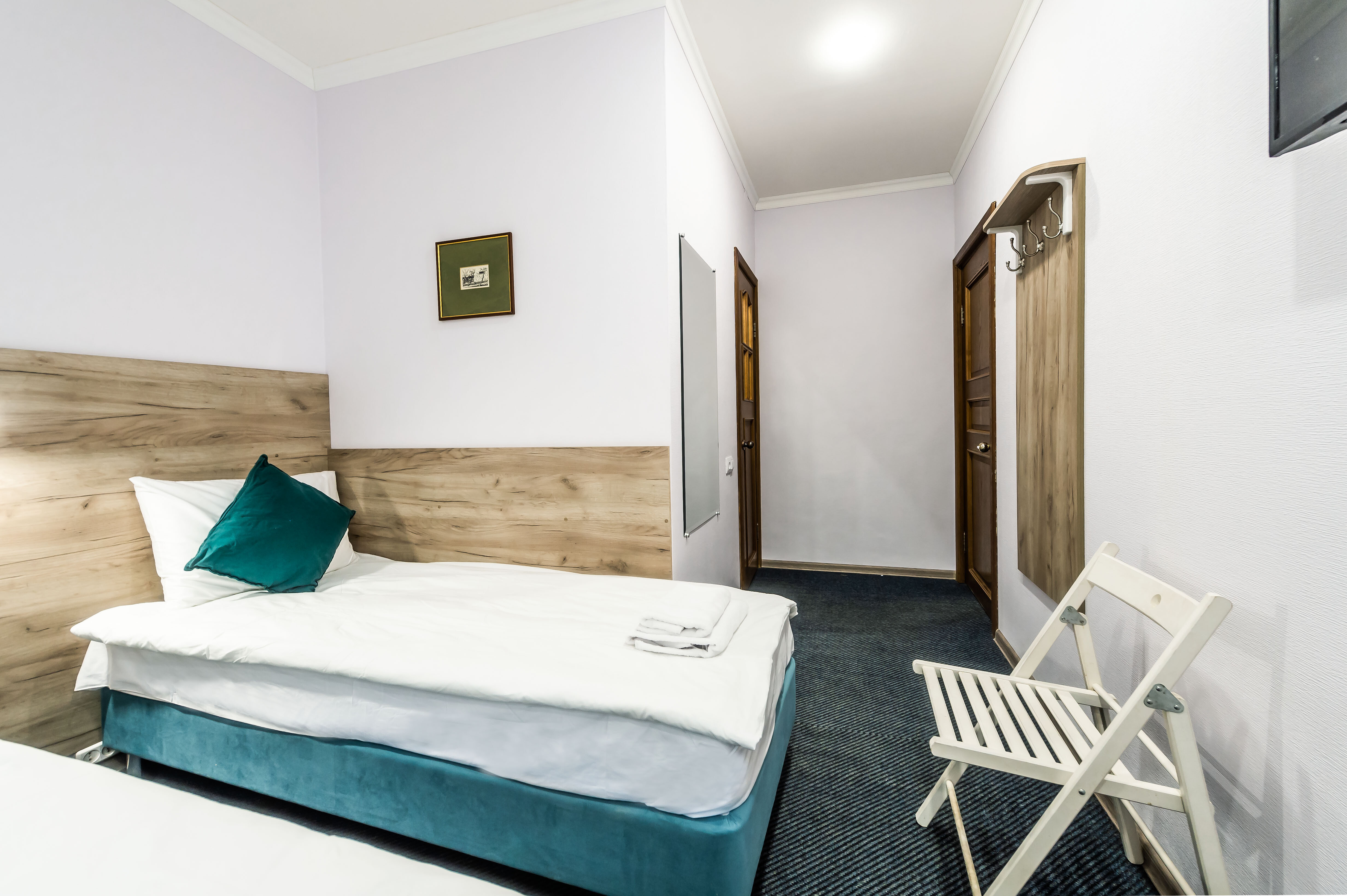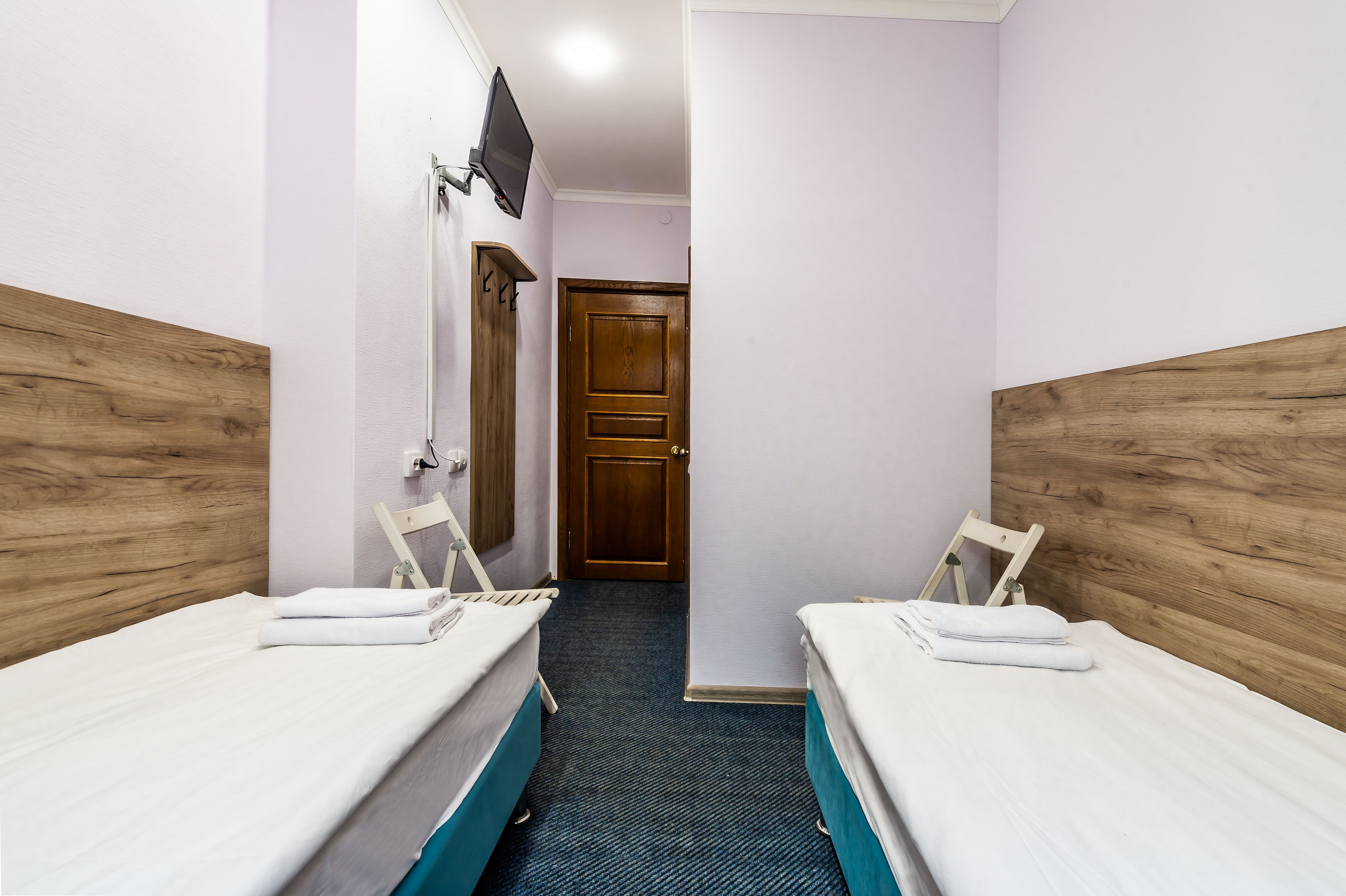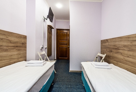 В номере: вешалка, зеркало, кровати односпальные, стулья, телевизор