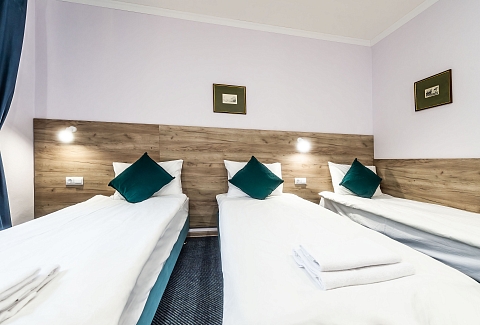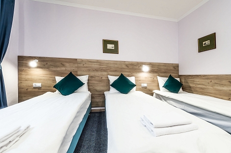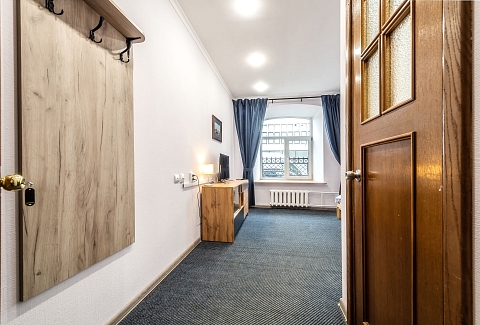 В номере: вешалка, зеркало, кровати односпальные /одна двуспальная кровать, кровать односпальная, прикроватные столики, стулья, телевизор