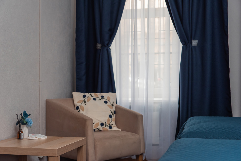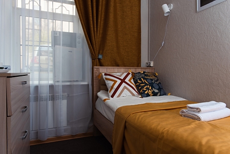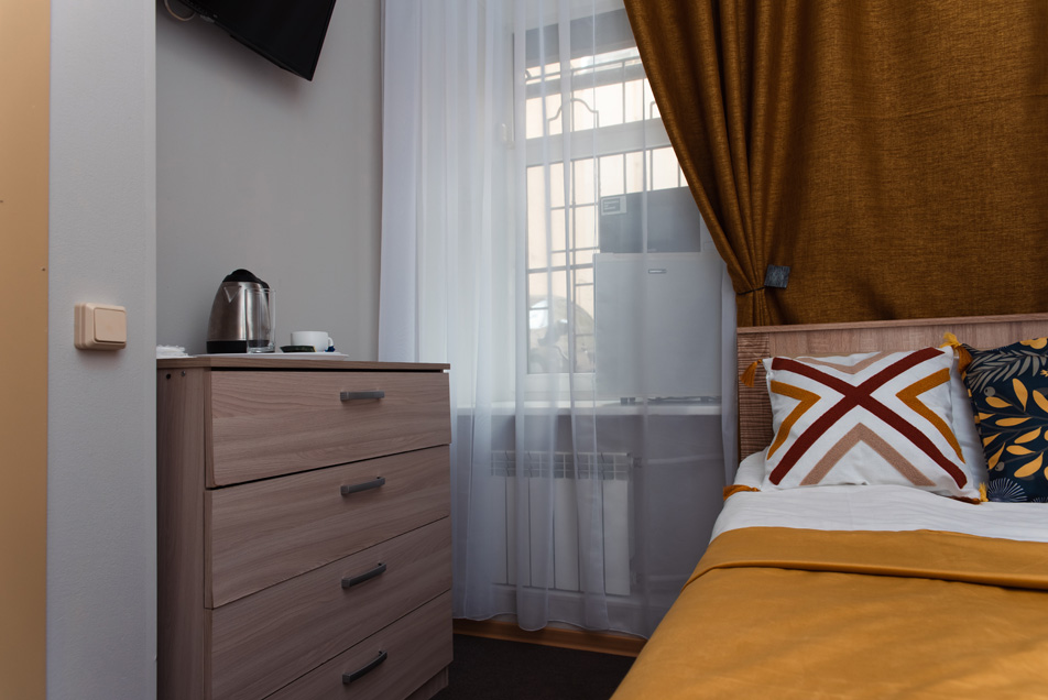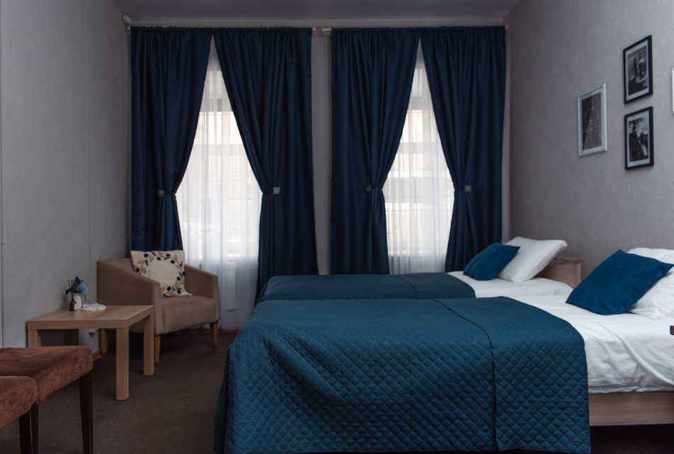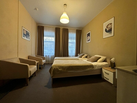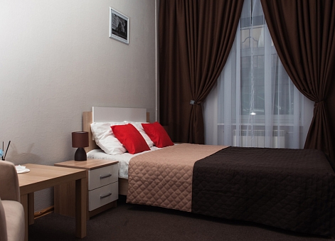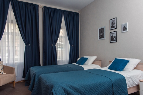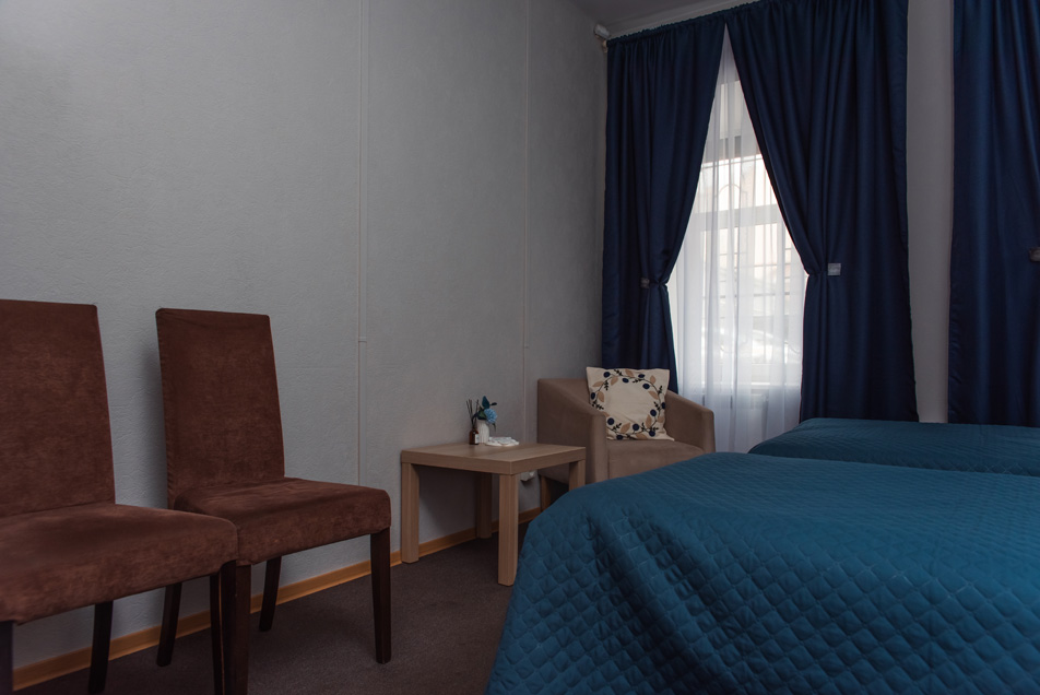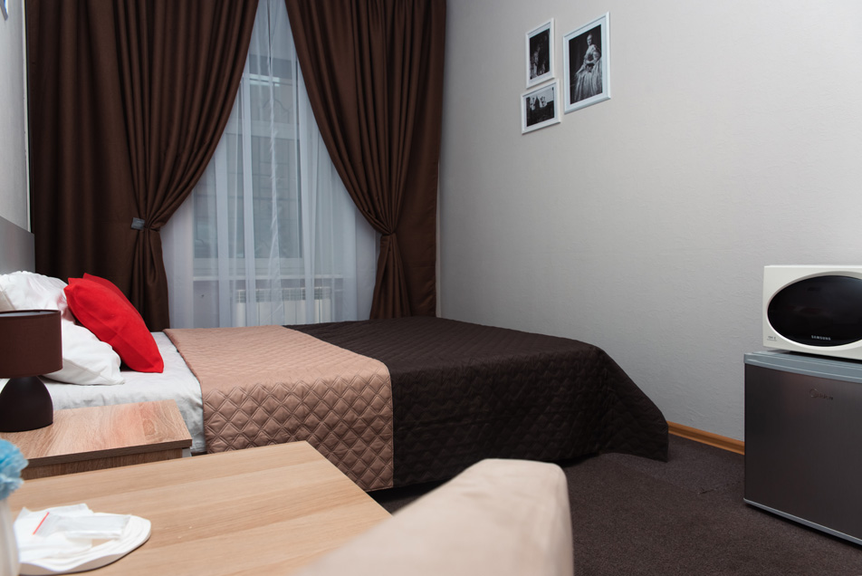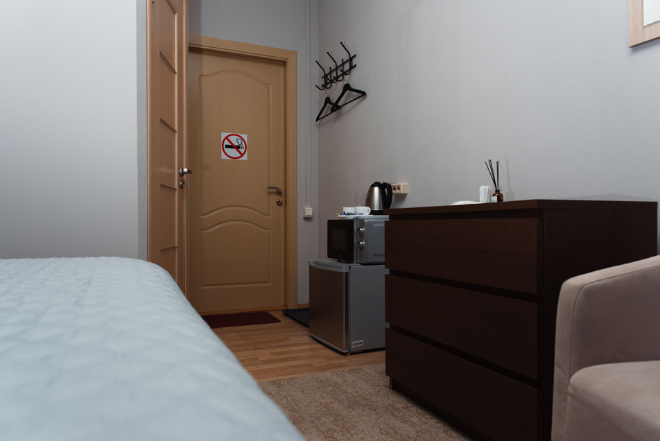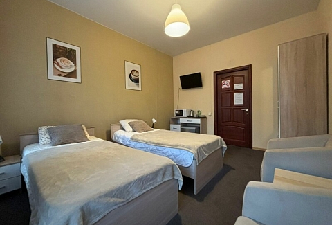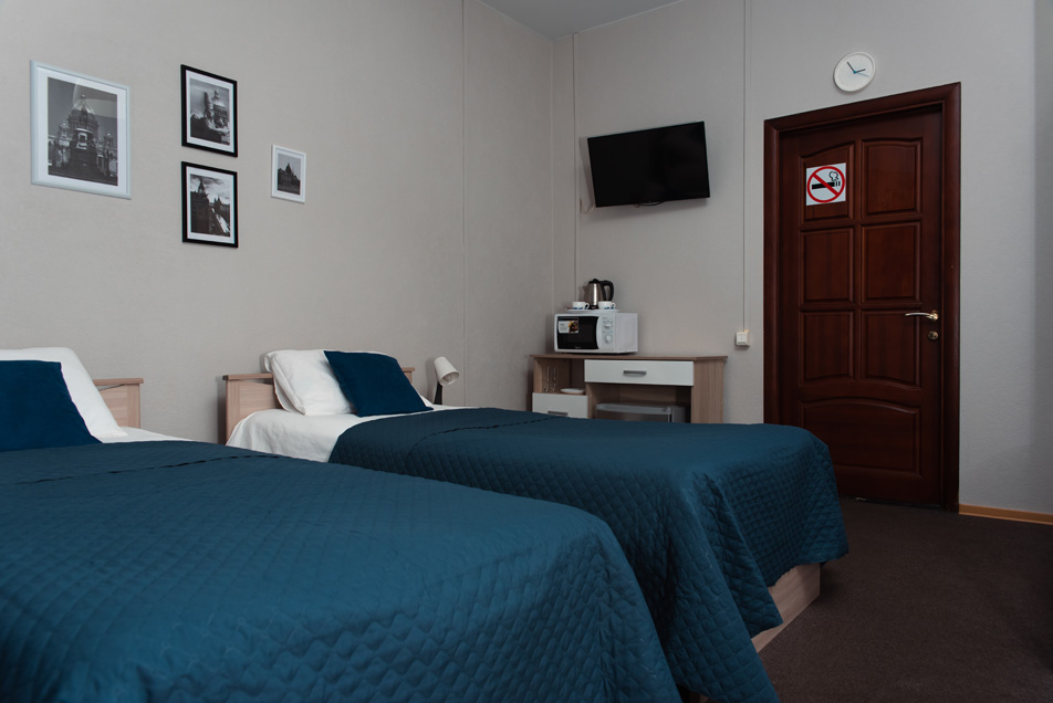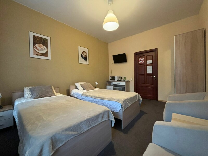 В номере: зеркало, кресла, кровати односпальные, прикроватные тумбочки, стол, шкаф, микроволновая печь, мини-холодильник, набор посуды, телевизор, электрочайник
