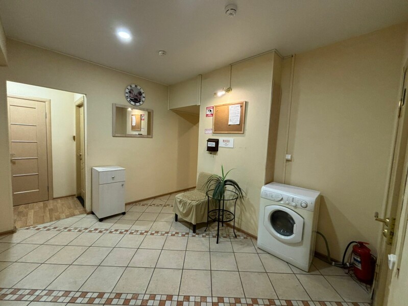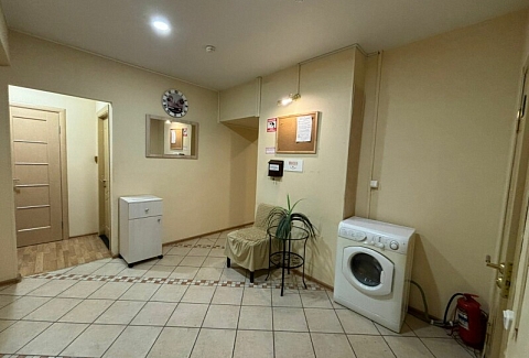 - На этаже стиральная машина, утюг и гладильные принадлежности