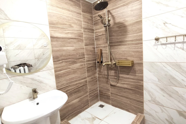 Санузел: с душем, туалетные принадлежности, фен