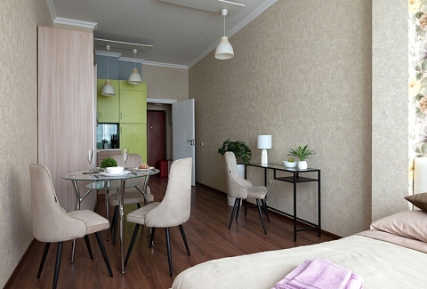 В непосредственной близости расположен выезд на Кад.В пределах пешей досягаемости есть всё необходимое для комфортного проживания — магазины, кафе, рестораны, фитнес-центры, торгово-развлекательные комплексы и многое другое.Эта уютная студия оборудована всем, что нужно для приятного проживания, включая кухонную посуду и косметические принадлежности.В распоряжении гостей апартаментов:Удобная двуспальная кроватьПостельное бельё и полотенца белоснежного цвета, подготовленные для каждого гостя;Косметические принадлежности.