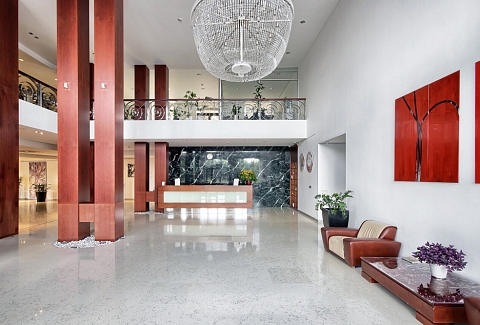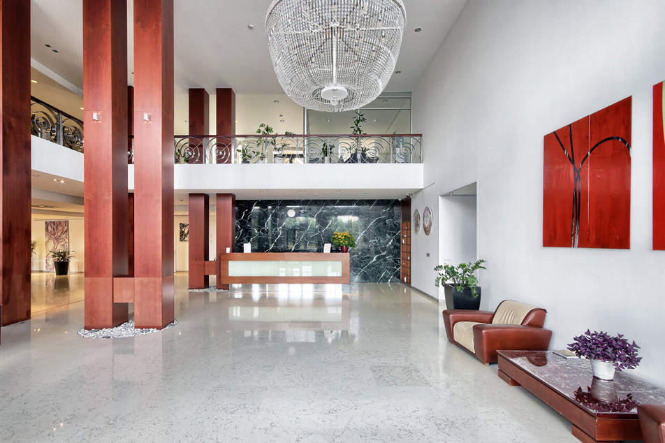 В номере: вешалка, диван, зеркало, комод, кресло, кровать двуспальная, прикроватные тумбочки, пуфик, стол, стулья, шкаф, гладильная доска, кондиционер, микроволновая печь, набор посуды, плита электрическая, посудомоечная машина, стиральная машина, сушилка для белья, телевизор, утюг, холодильник, электрочайник