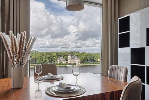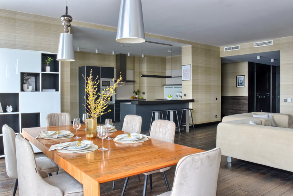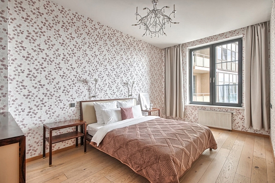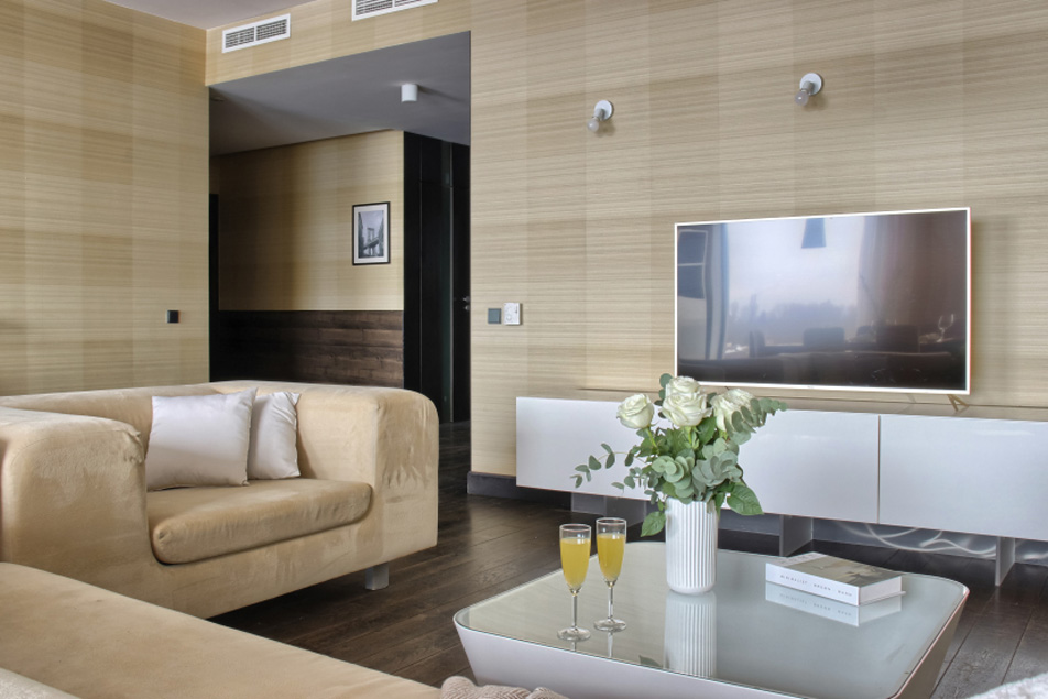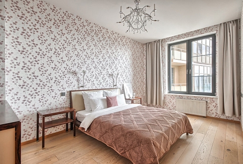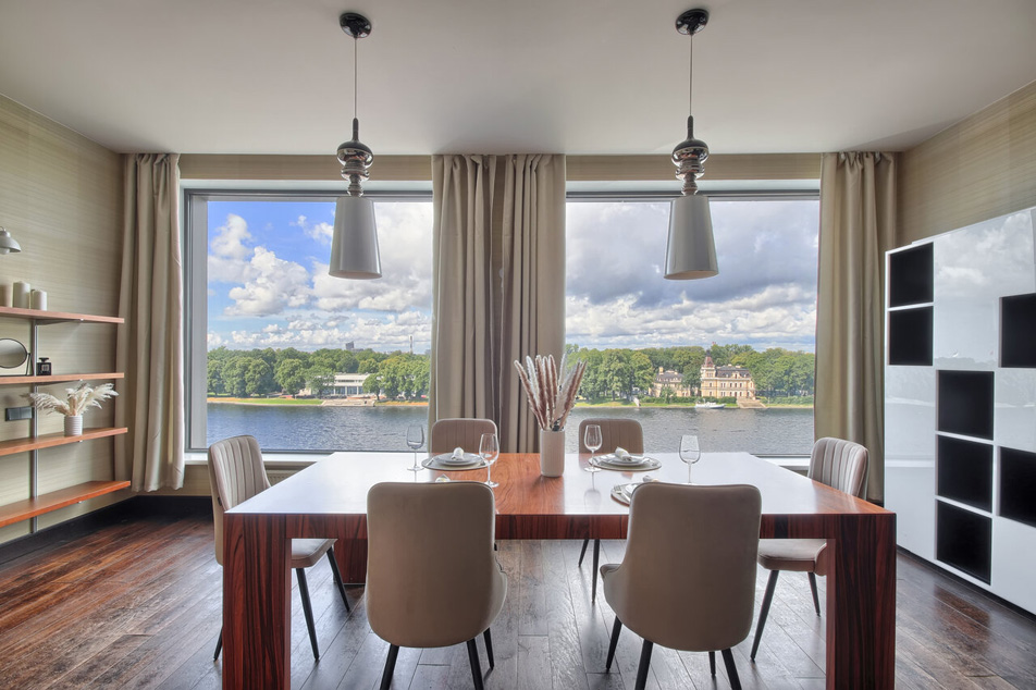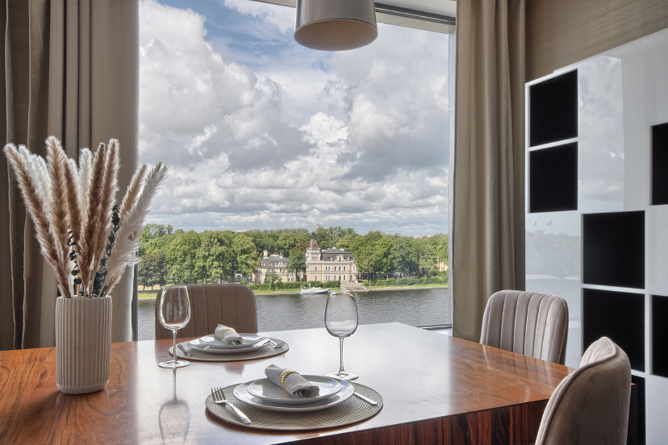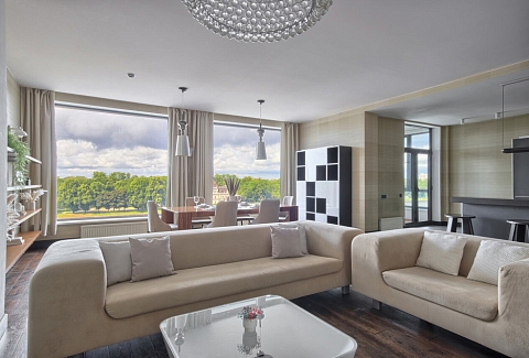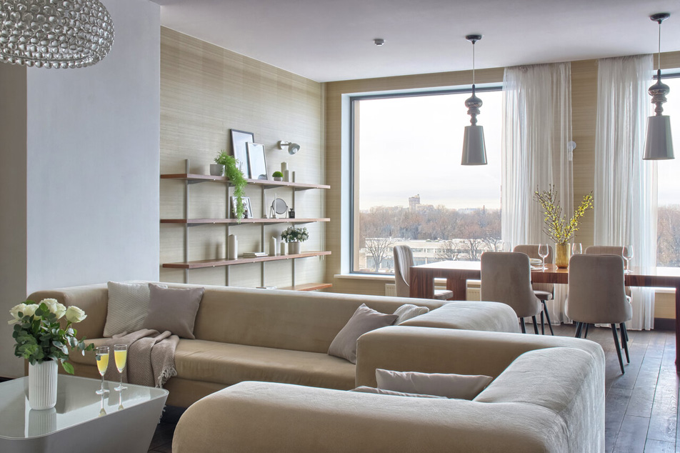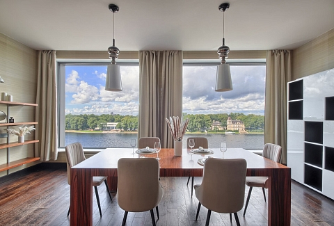 Эти апартаменты расположены в самом сердце Санкт-Петербурга, в одном из самых эксклюзивных и тщательно охраняемых клубных домов, находят свой дом известные спортсмены, звезды эстрады и преуспевающие предприниматели.Интерьер этого жилья был создан под руководством Константина Николаева из архитектурного бюро Гришиной-Николаева. Из огромных окон гостиной площадью 50 квадратных метров, которая плавно переходит в 20-метровую кухню с барной стойкой, открывается потрясающий вид на Неву и зеленые просторы Крестовского острова. Две уединенные и тихие спальни с просторной планировкой выходят окнами во внутренний двор, обеспечивая покой и приватность.