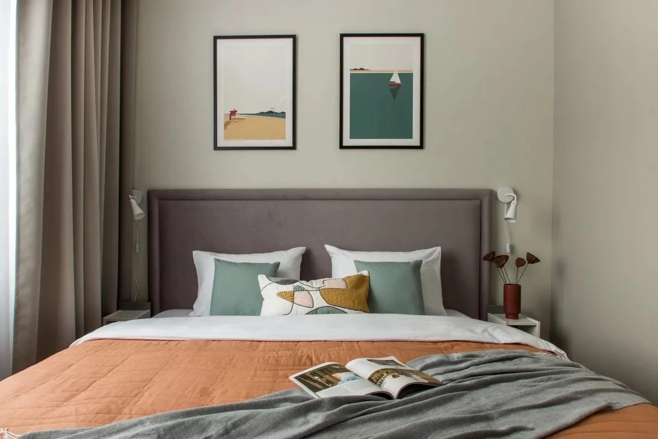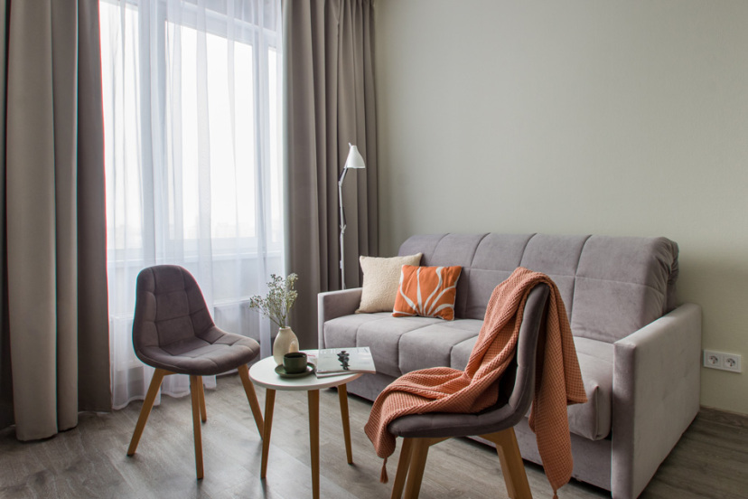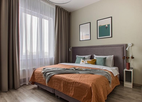 В номере: вешалка, диван раскладной, зеркало, комод, кровать двуспальная, прикроватные тумбочки, стол, стулья, шкаф, кофемашина, микроволновая печь, мини-холодильник, набор посуды, плита электрическая, посудомоечная машина, стиральная машина, телевизор, электрочайник
