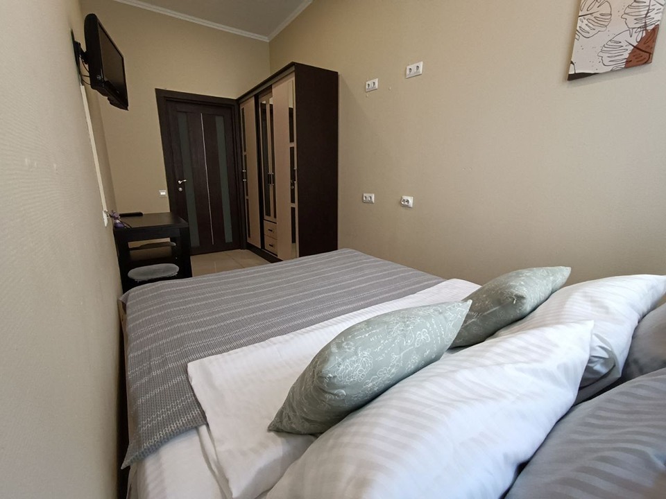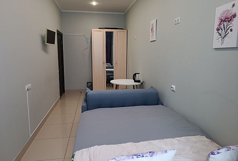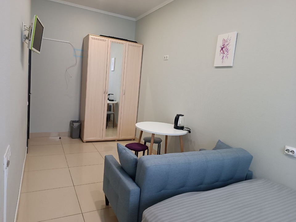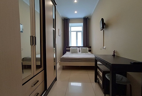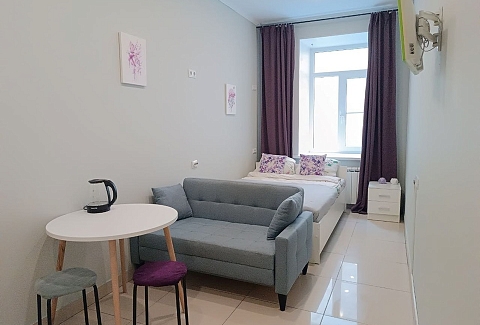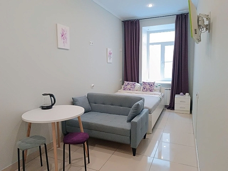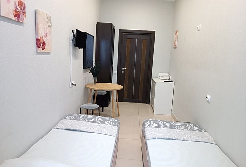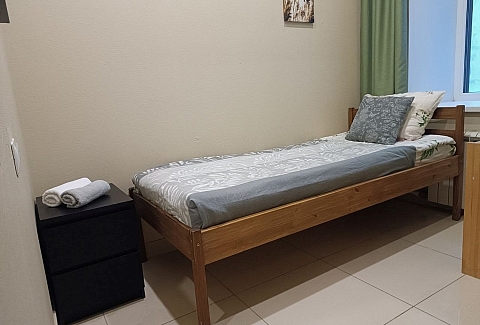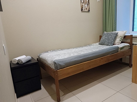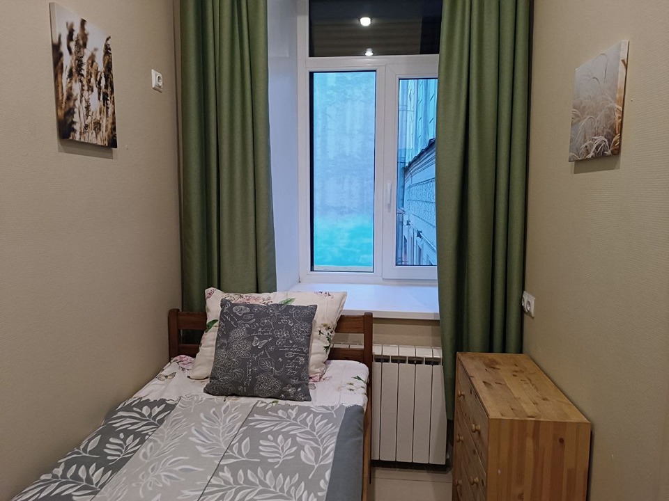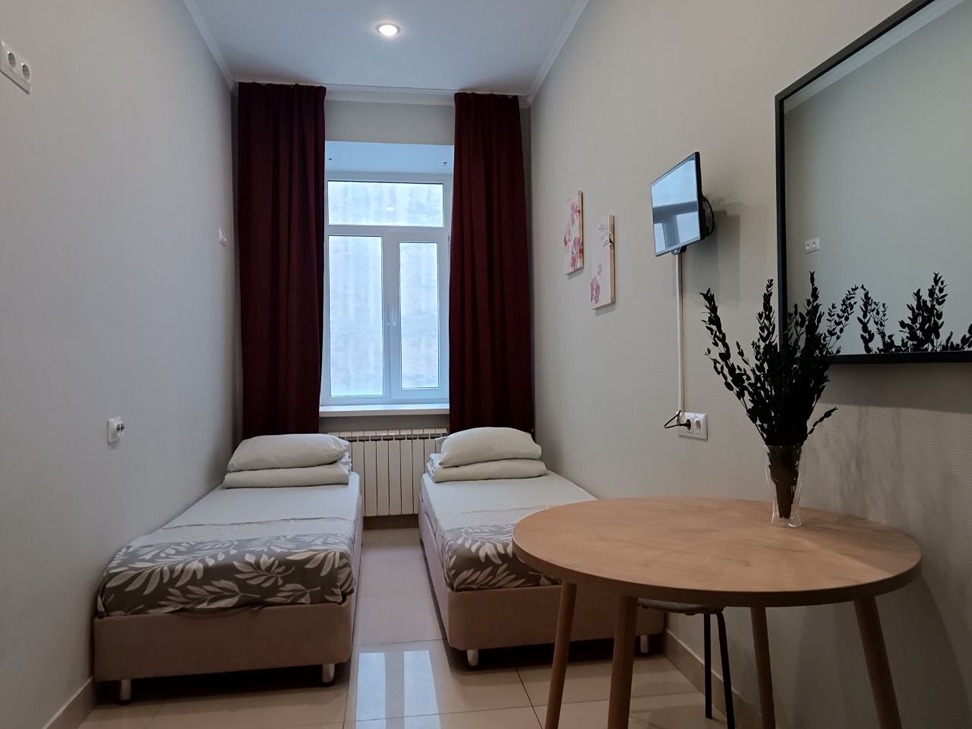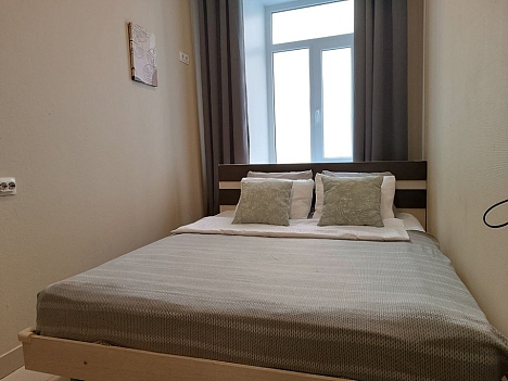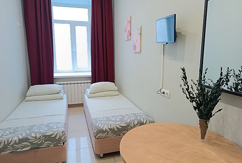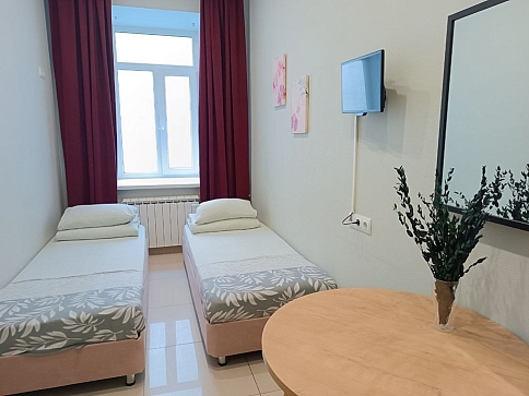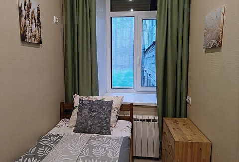 Окна номеров выходят в уединенный дворик, обеспечивая тишину и спокойствие. Здесь представлены комфортабельные одноместные, двухместные и трехместные номера, оборудованные всем необходимым для приятного пребывания. Интерьер выдержан в классическом стиле. Кровати с ортопедическими матрасами и постельное белье высокого качества создадут атмосферу уюта. К услугам гостей общая кухня и два общих санузла. Полотенца предоставляются. Общая кухня оснащена всем необходимым, включая холодильник, микроволновую печь, чайный набор и посуду. Рядом с гостевым домом есть разнообразные кафе и продуктовые магазины. В шаговой доступности находятся музей-квартира Л.Н. Гумилева и торговый центр «Галерея».