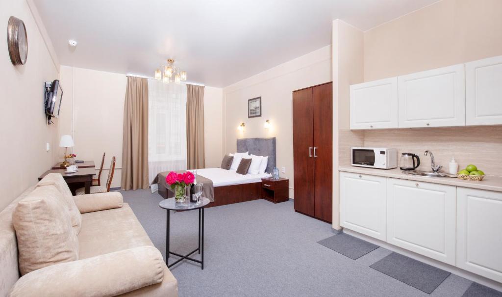 Отель разместился в историческом четырехэтажном здании, расположенном в середине Моховой улицы. Гостей ожидают номера разной категории комфорта, выдержанные в классическом стиле. В каждом номере имеется удобный мебельный гарнитур, кондиционер, мини-холодильник, телевизор, в санузле для гостей подготовлен набор косметических принадлежностей. Номера повышенной комфортности оснащены кухней, а в бюджетных вариантах санузел внешний - находится напротив номера на этаже. Для гостей в отеле организована общая кухня с микроволновкой и кофемашиной, там можно самостоятельно приготовить или разогреть еду, также в гостинице доступен беспроводной интернет.