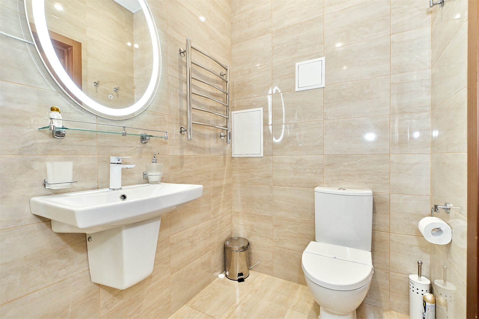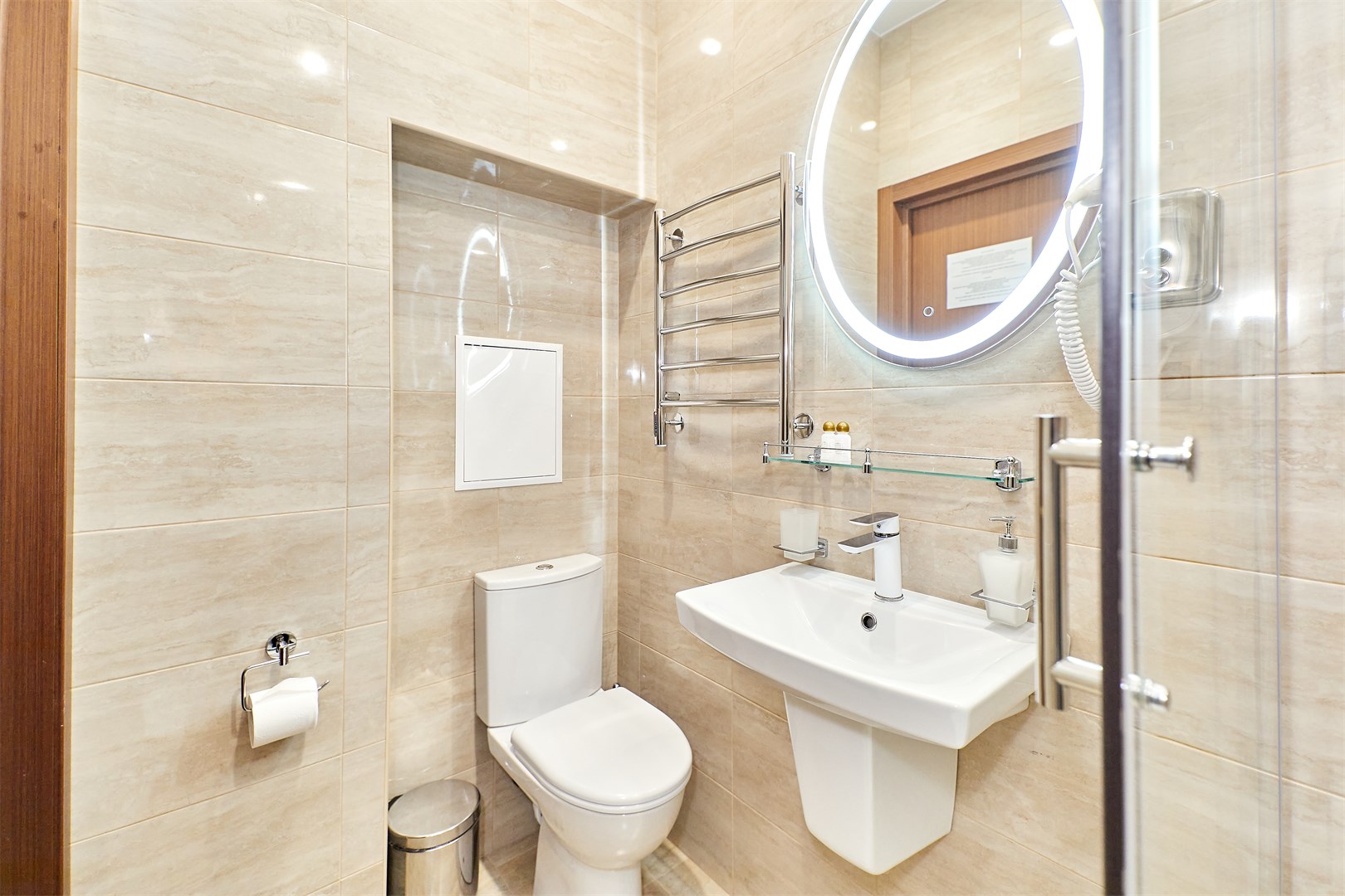 Санузел: с душем, тапочки, туалетные принадлежности, фен