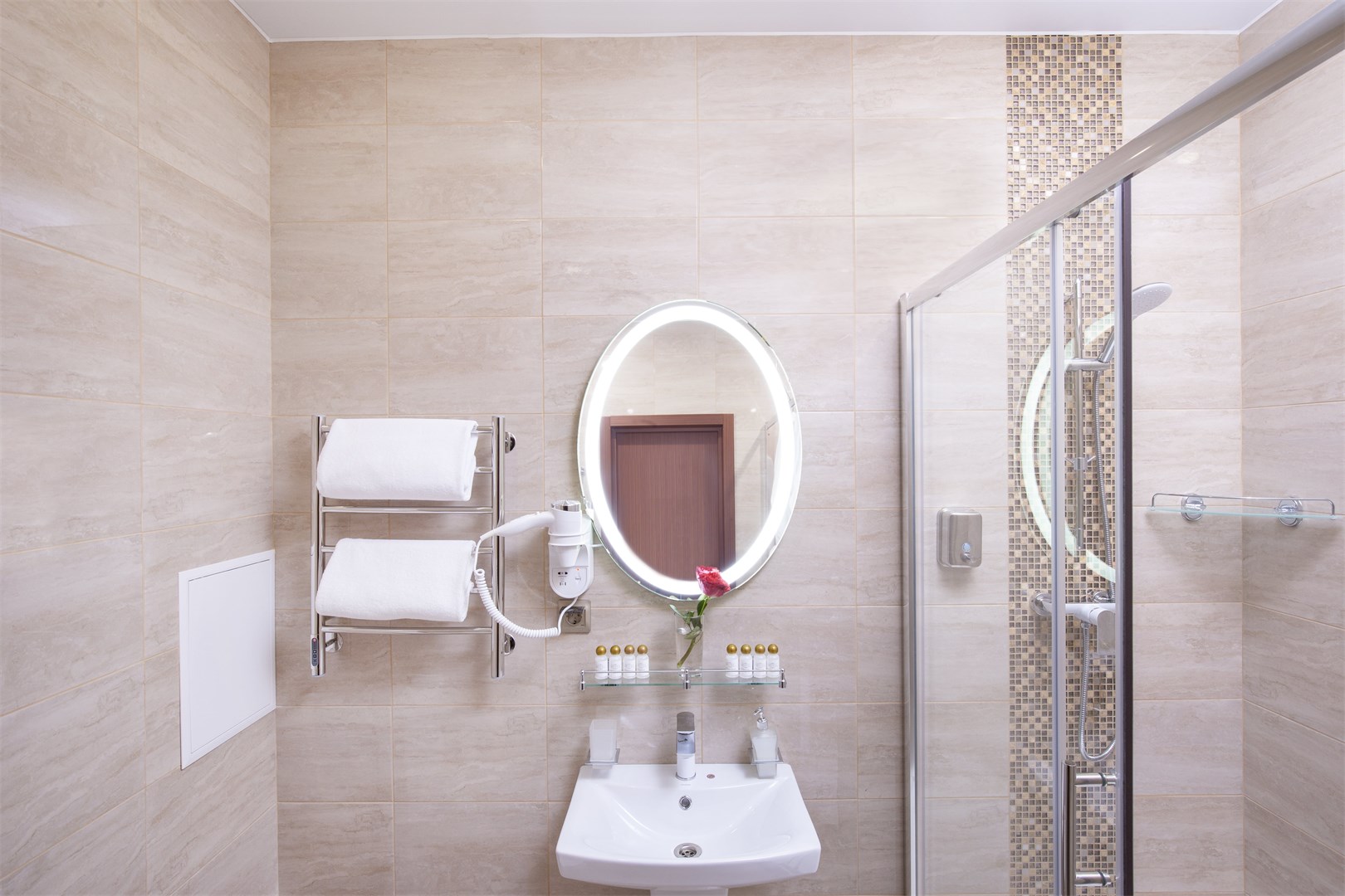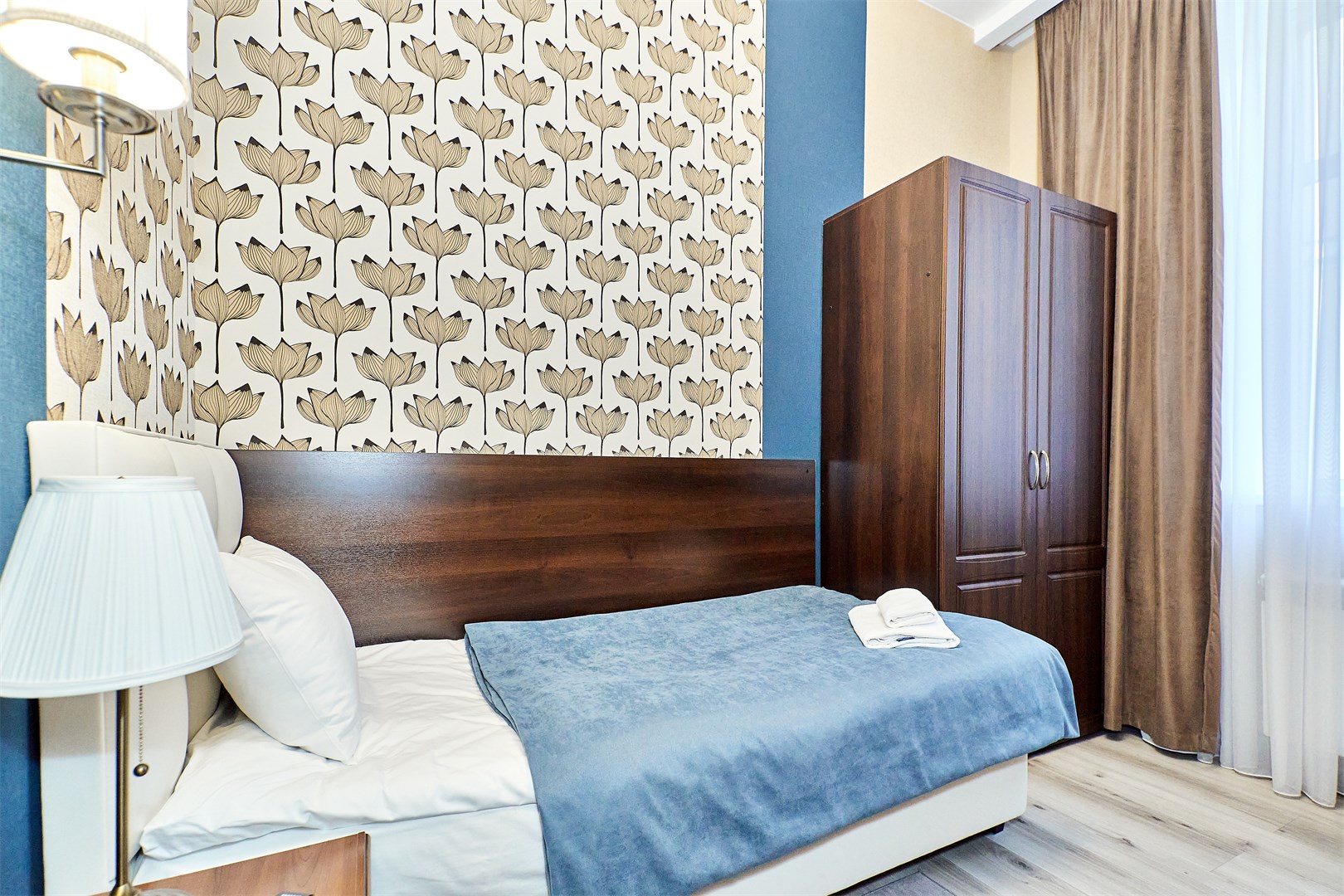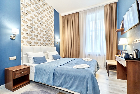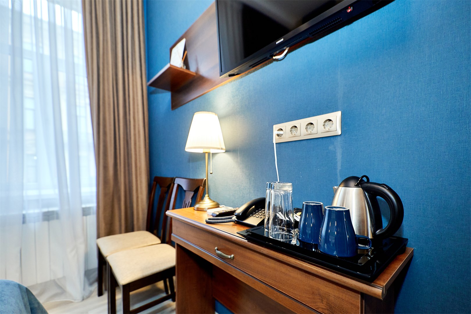 В номере: зеркало, кровать односпальная, прикроватная тумбочка, стол, стул, шкаф, гладильная доска, кондиционер, мини-холодильник, сейф, телевизор, телефон, утюг, чайный набор посуды, электрочайник