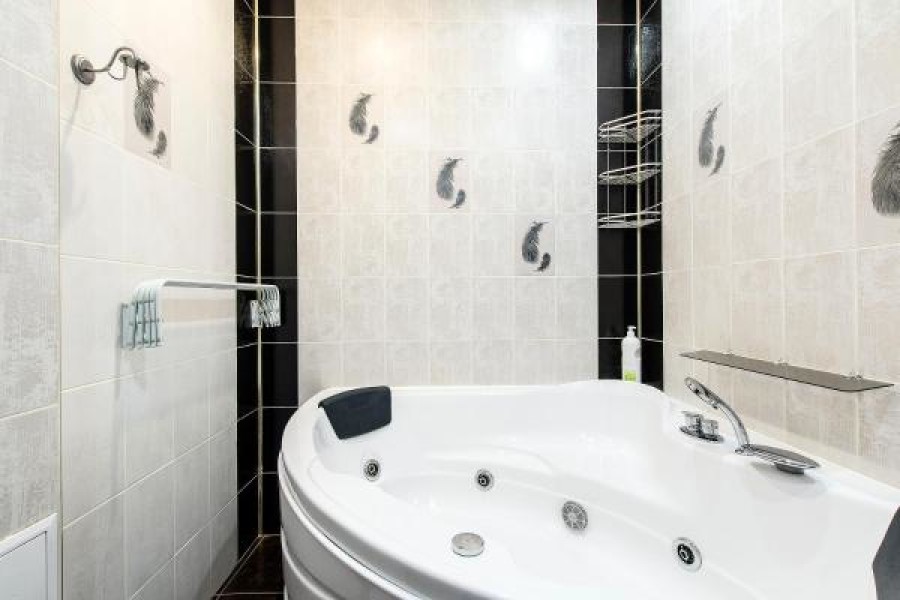 Санузел: с ванной, тапочки, туалетные принадлежности