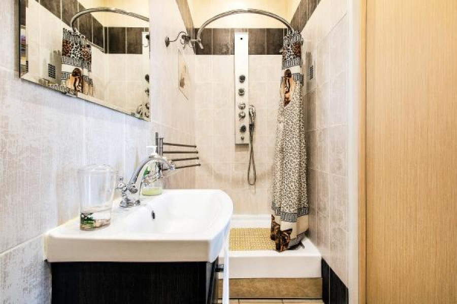 Санузел: с душем, тапочки, туалетные принадлежности