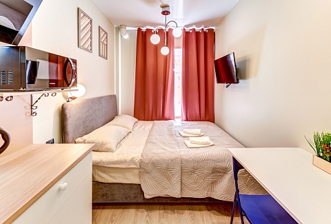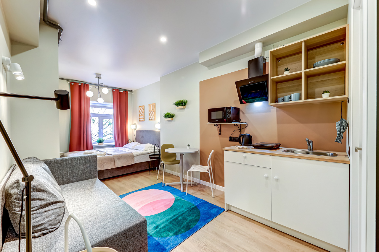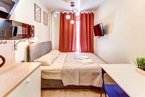 Новые, очень уютные, небольшие апартаменты в самом сердце Петербурга. Уютные номера, где есть все необходимое для комфортного проживания: полноценная кухня, санузел, зона спальни. В шаговой доступности вся развитая инфраструктура большого города.