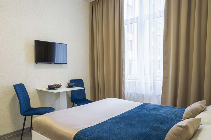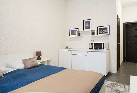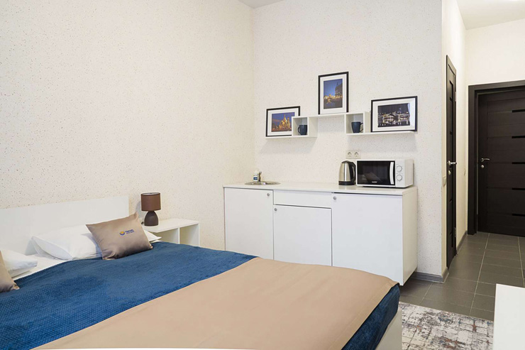 Аэропорт находится в 20 километрах от гостиницы. Добраться до железнодорожного вокзала можно за 5 минут на автомобиле. Расстояние до станции метро «Площадь Восстания» составляет 1,4 километра. Номера в разных категориях комфорта расположились в 11-этажном современном здании. В комнатах для отдыхающих установлена комфортабельная мягкая мебель, шкаф, работает высокоскоростной интернет, есть телевизор. Санузел с душем. Гостям предоставляются туалетные принадлежности, мягкие полотенца и фен, чтобы высушить волосы. Для самостоятельного приготовления еды есть небольшая кухонная зона, оборудованная мини-холодильником, плитой, микроволновой печью, электрическим чайником и необходимым набором посуды. В распоряжении гостей уютная лаунж-зона. Стойка регистрации круглосуточная.