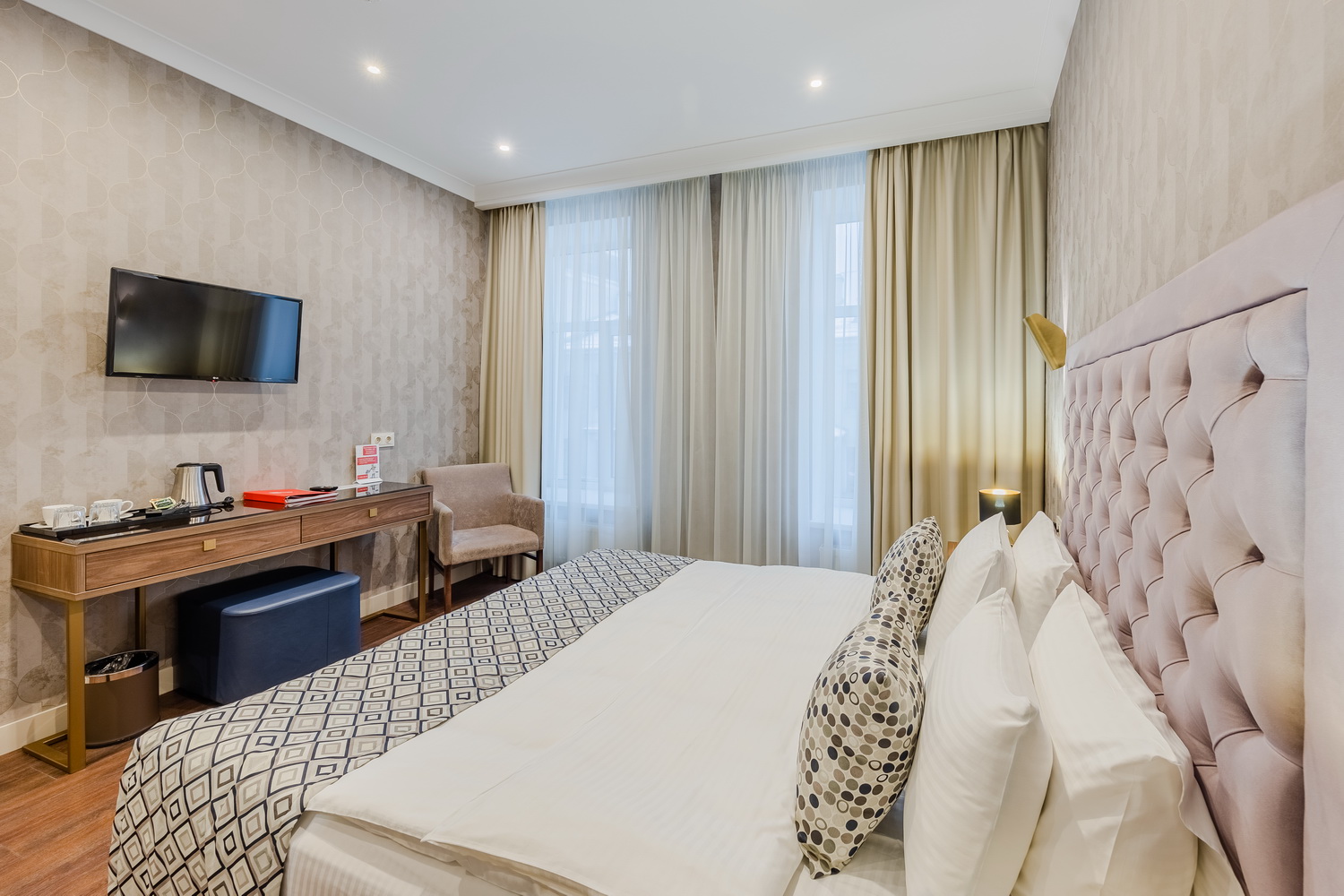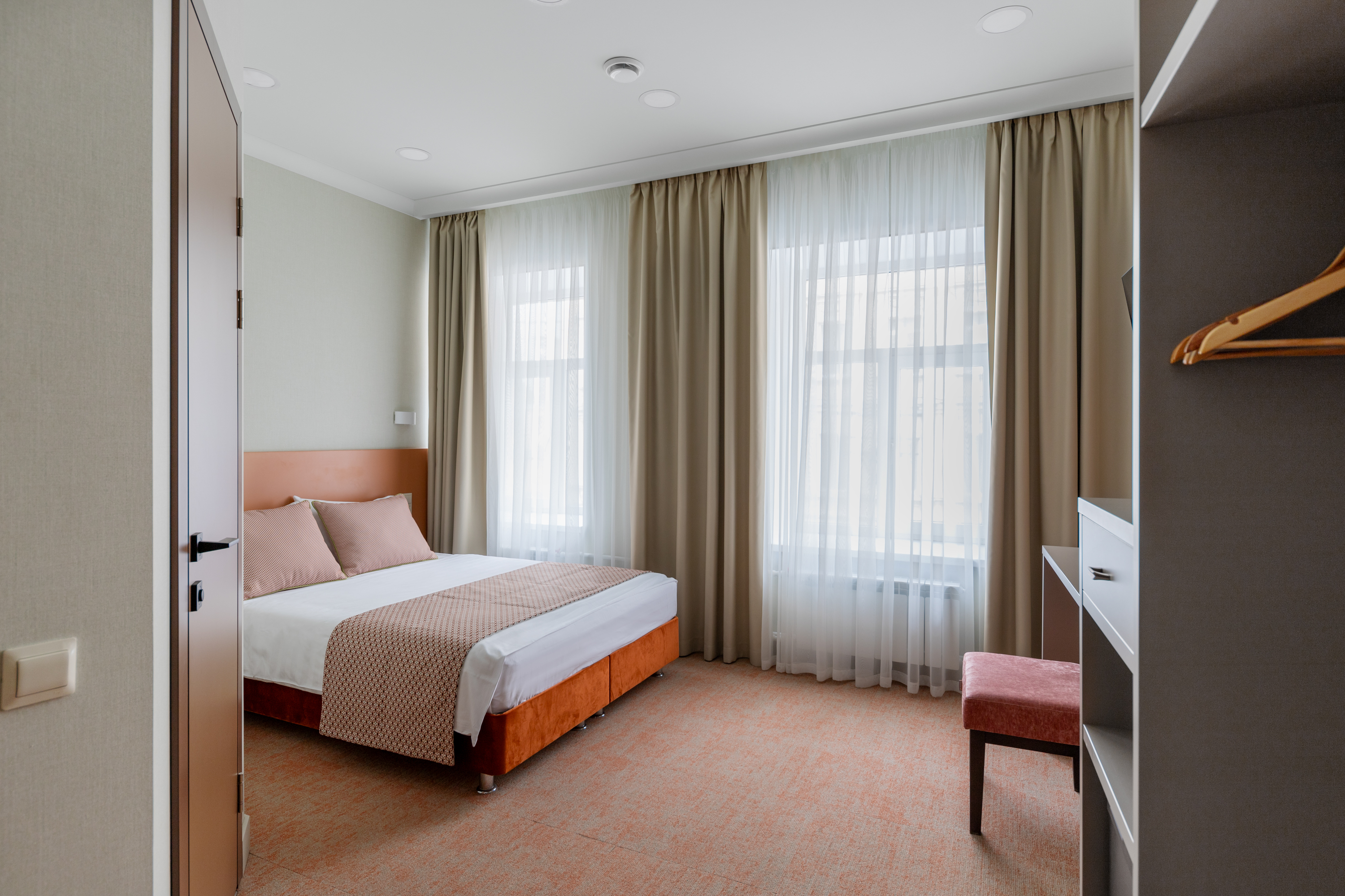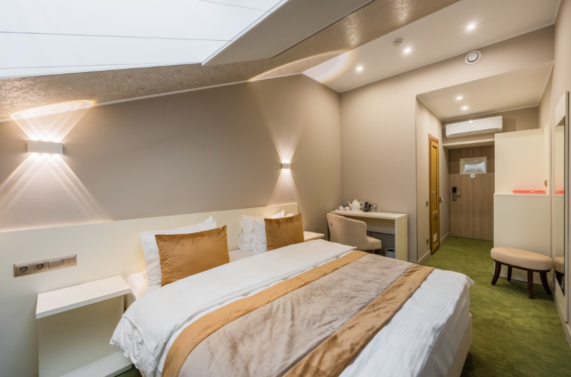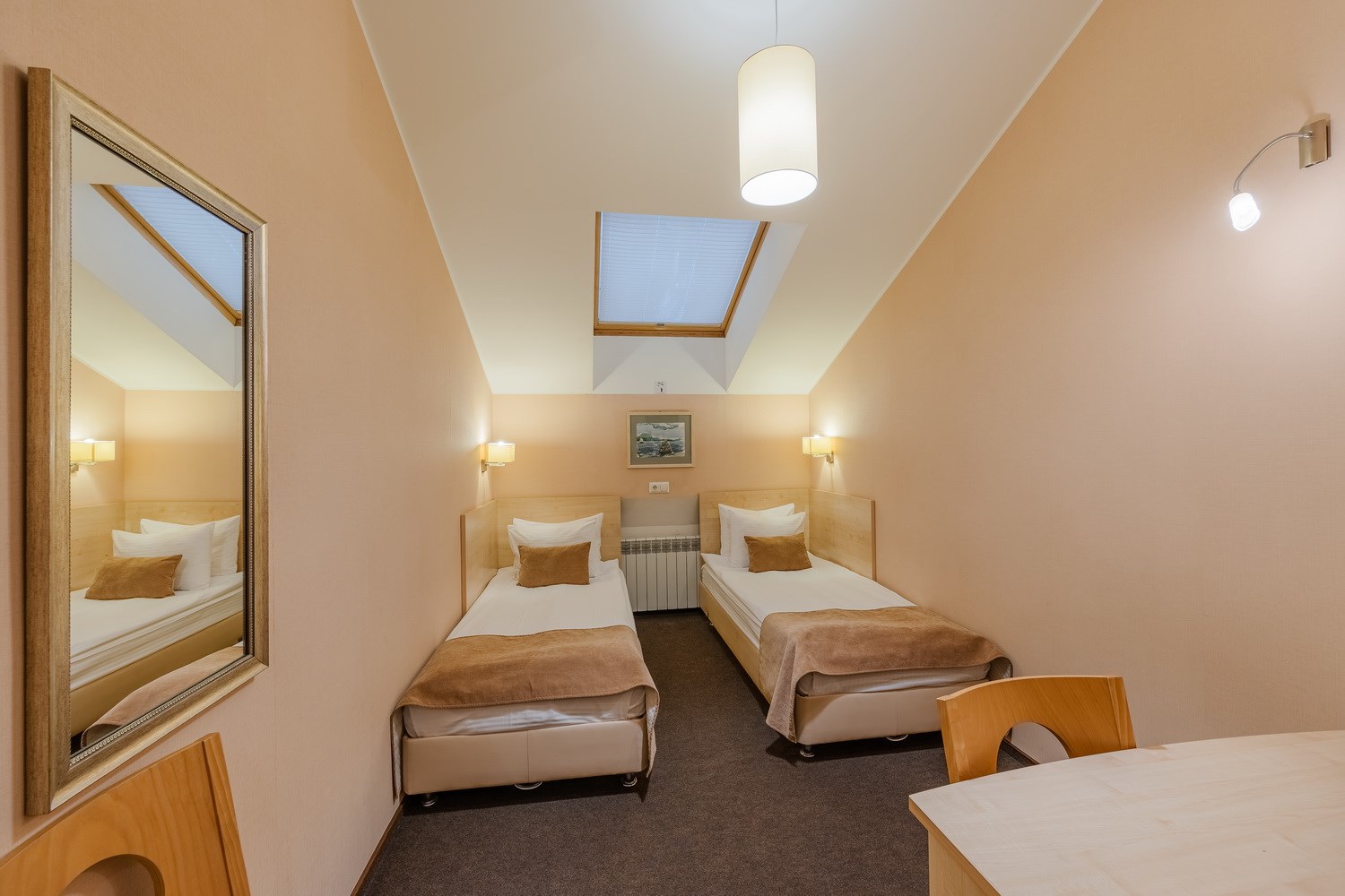 Все комнаты оснащены собственными удобствами, в номерах стандарт к услугам гостей душевые кабинки, а в люксовых – ванная. Также в каждом номере есть кондиционер, телефон, телевизор, холодильник, фен и достаточное количество современной мебели. В гостевом доме функционирует один 2-комнатный люксовый номер. На последнем этаже гостиницы есть мансардные номера с замечательным обзором и планировкой.Каждое утро в отеле сервируется завтрак в виде шведского стола. Для детей до 6-летнего возраста питание осуществляется бесплатно. Для гостей на каждом этаже установлены кулеры с очищенной водой, отведены помещения для курящих. В номерах отеля доступен беспроводной интернет Wi-Fi. Для удобства отдыхающих предусмотрена услуга проката утюга.Для проведения деловых переговоров и небольших семинаров предусмотрен конференц-зал вместимостью до 25 человек. Торжественные мероприятия с комфортом организуются в ресторане отеля.