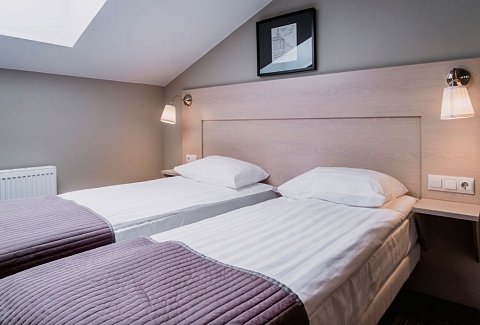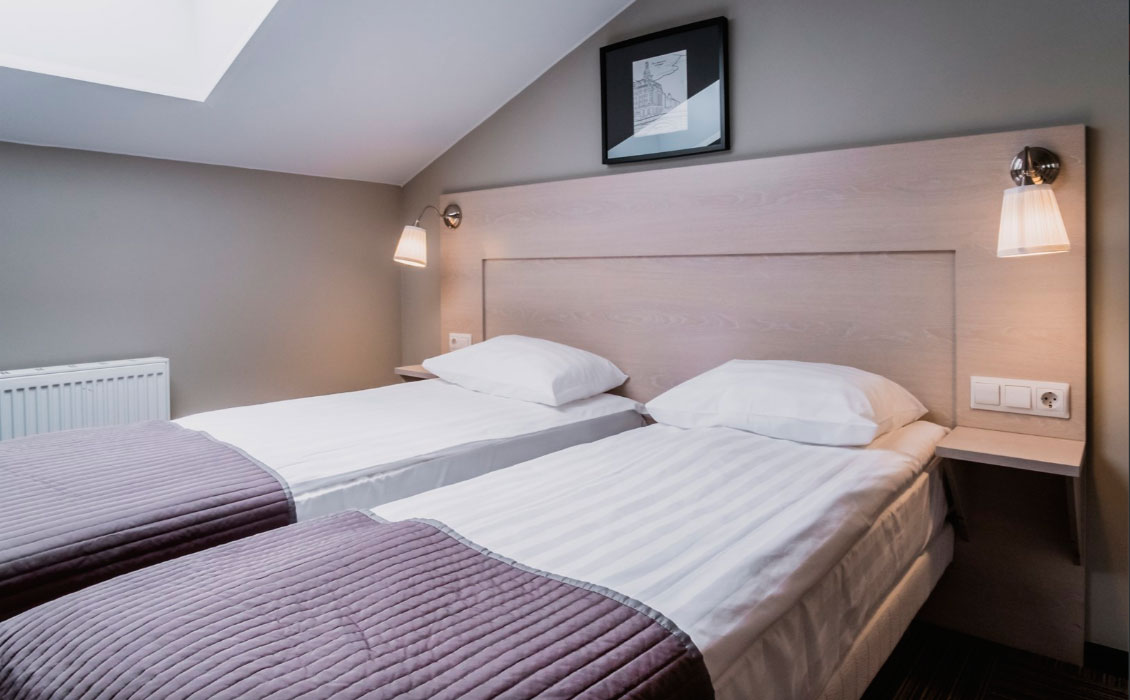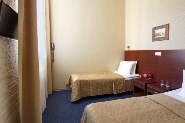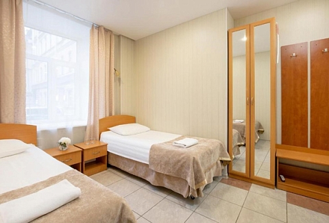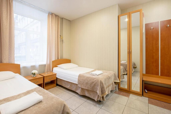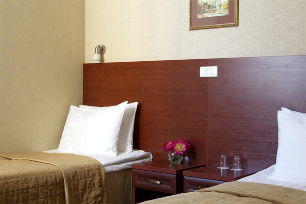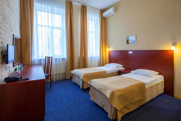 В номере: зеркало, кровати односпальные, прикроватные тумбочки, стол, стулья, шкаф, кондиционер, мини-холодильник, сейф, телевизор, телефон