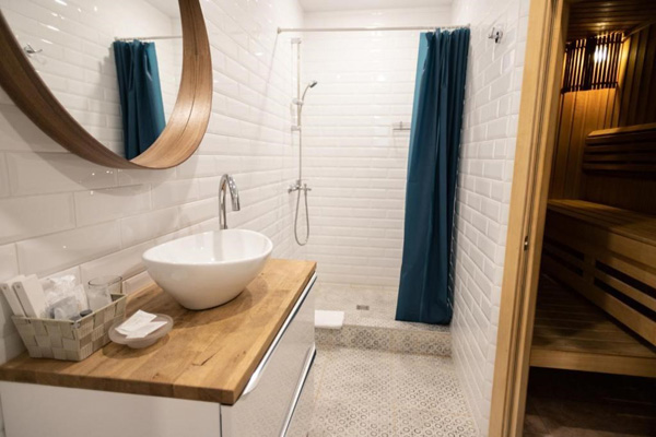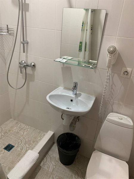 Санузел: с душем, туалетные принадлежности, фен