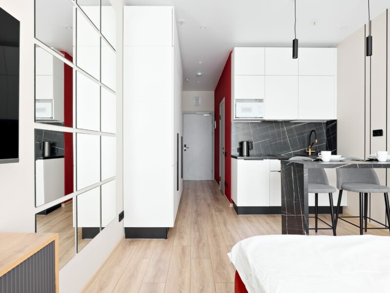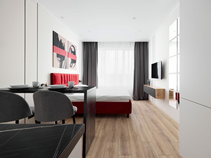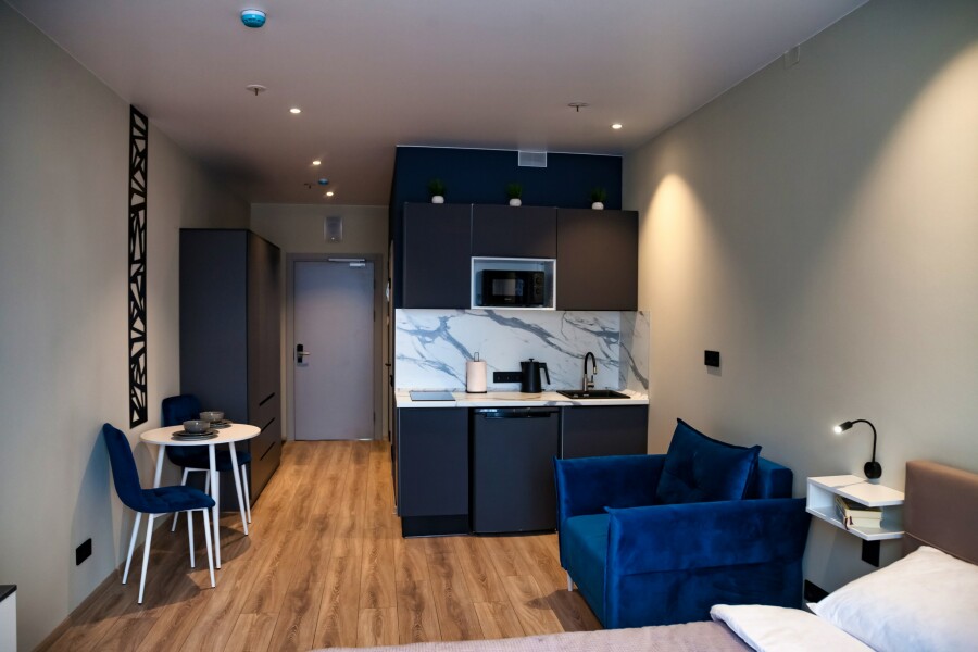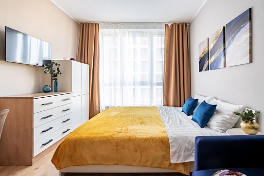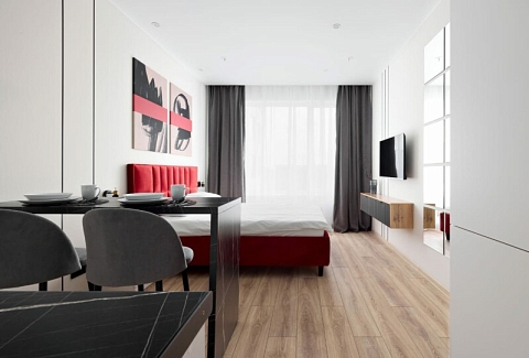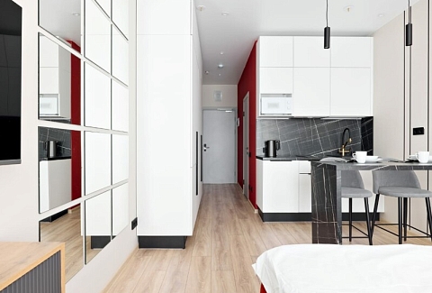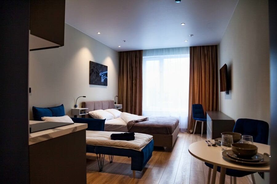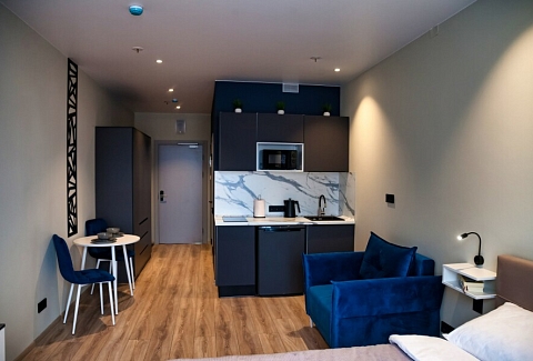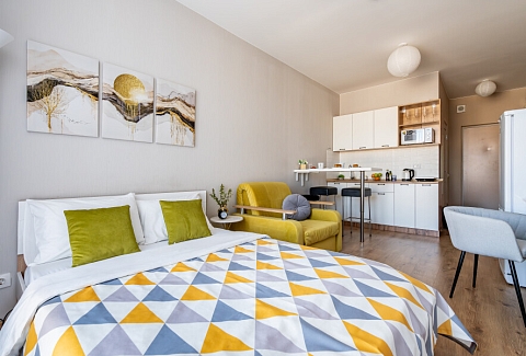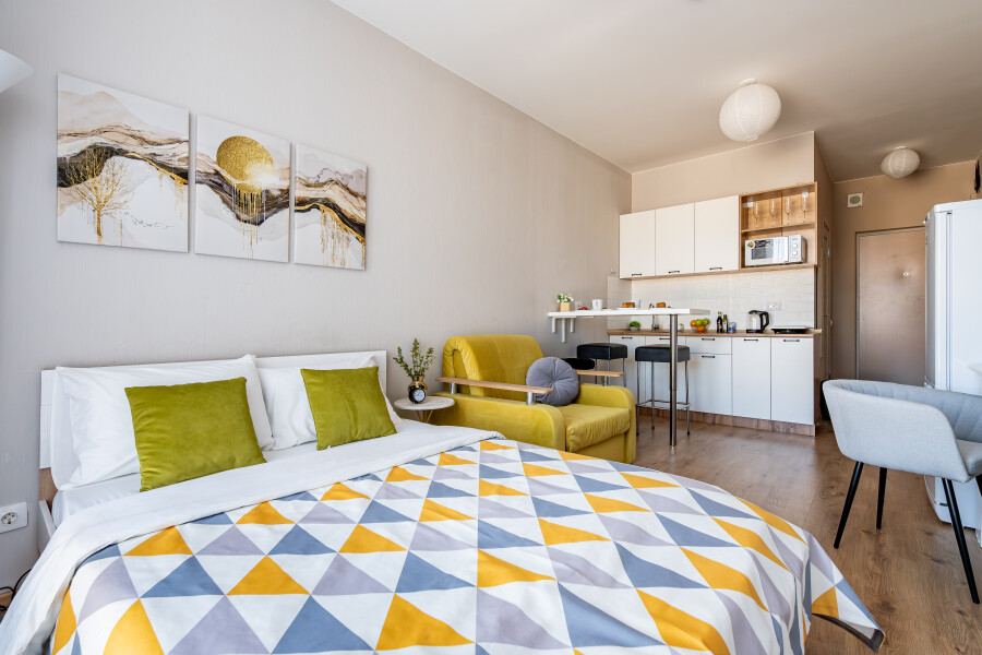 В десяти минутах езды находятся такие известные места, как Смольный собор, Александро-Невская лавра и парк имени И.В. Бабушкина.Для проживания предлагаются несколько апартаментов, рассчитанных на двоих гостей. Каждый номер отличается современным и минималистичным дизайном, оснащен удобной двуспальной кроватью и мини-кухней с необходимым набором кухонной утвари. В ванной комнате установлены душ, стиральная машина, фен и предоставляются туалетно-косметические средства.На территории комплекса имеется внутренний двор. Наличие общественной парковки рядом с домом делает пребывание гостей еще более удобным и беззаботным.