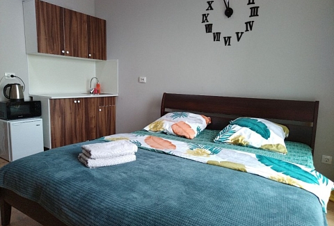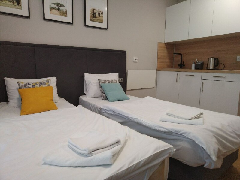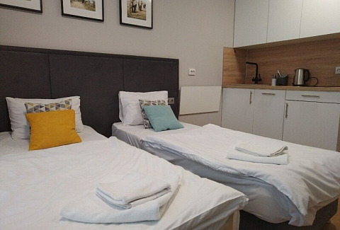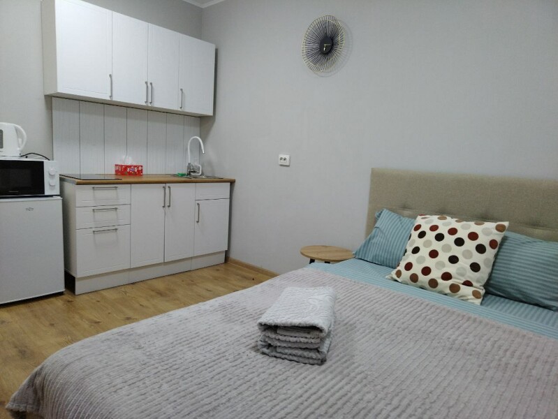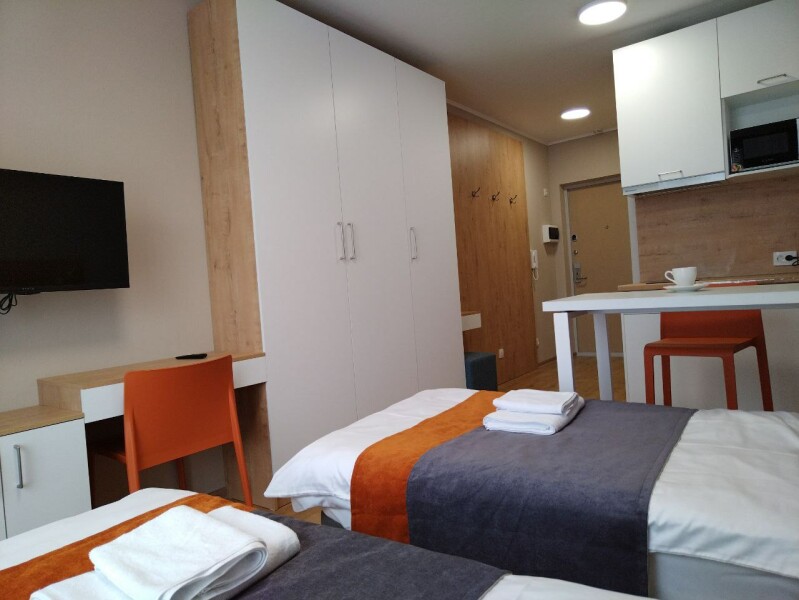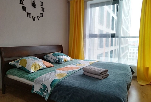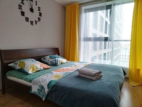 Поездом до ж/д вокзала Московский (г. Санкт-Петербург), далее на метро до станции «Парнас», далее пройти 930 м до апартаментов.