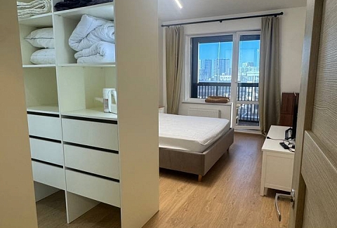 В Московском районе Санкт-Петербурга, в современном жилом комплексе, находятся эти просторные апартаменты. До метро «Московская» — около двенадцати минут пешком, до аэропорта Пулково — десять–пятнадцать минут на машине, а выезд на КАД — всего в трёх–пяти минутах. Рядом есть магазины, кафе и аптеки, а во дворе доступна бесплатная парковка при наличии мест.Внутри апартаментов могут с комфортом разместиться трое взрослых: здесь есть двуспальная кровать и раскладывающийся односпальный диван.